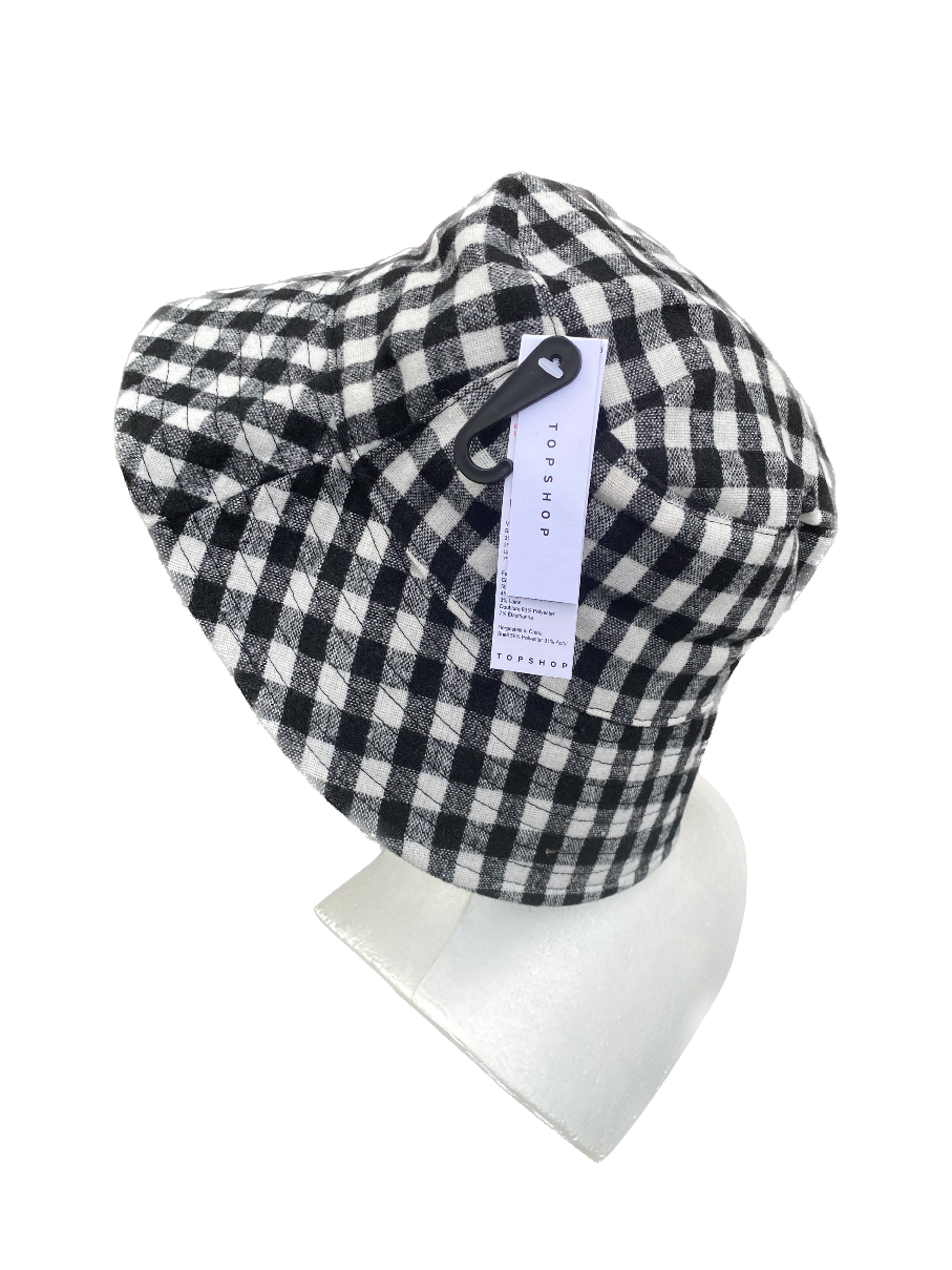 Czapka kapelusz damski zimowy Topshop krata czarno-biała r. uniwersalny
