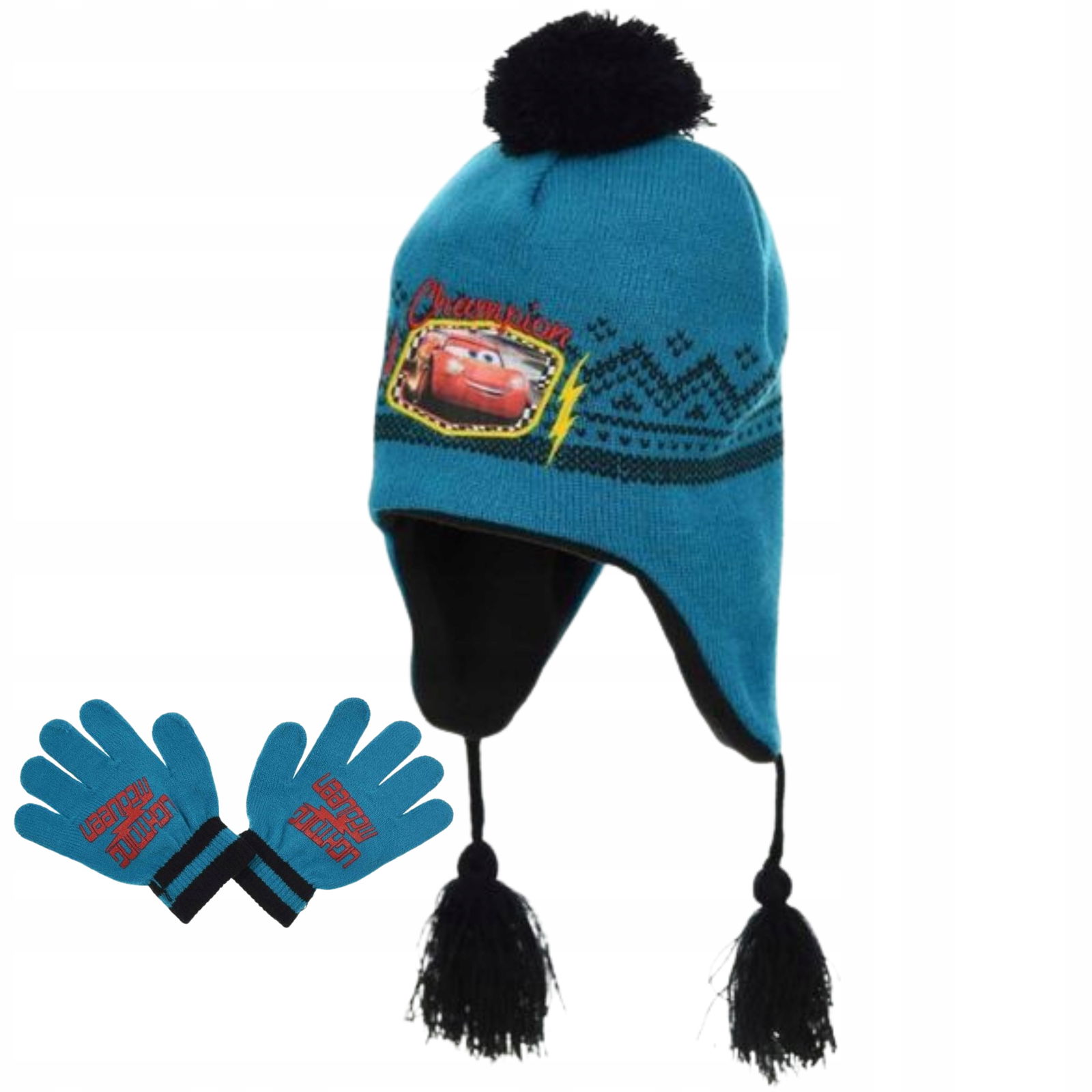 Zestaw zimowy Cars Disney Pixar składający się z czapki peruwiańskiej i rękawiczek to praktyczne i stylowe rozwiązanie dla każdego małego fana bajki Auta 3.