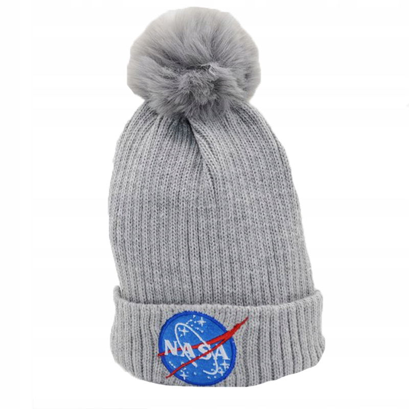Wspaniała dzianinowa czapka zimowa z dodatkowym haftowanym logo i napisem „NASA”.