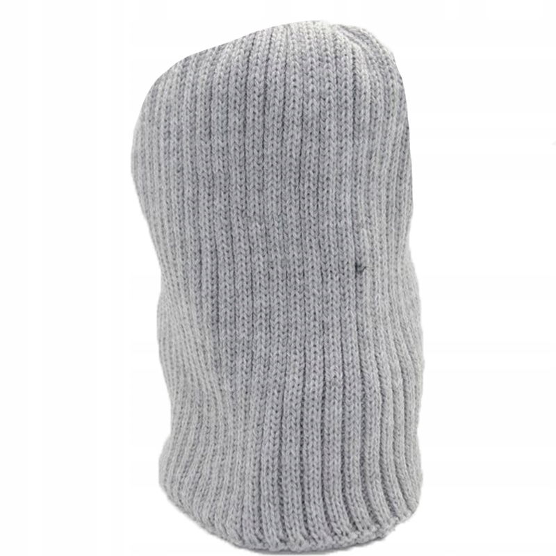 Kolor jest szary, a góra kończy się dużym puszystym pomponem. Tkanina to 100% akryl - dzianina maszynowa.