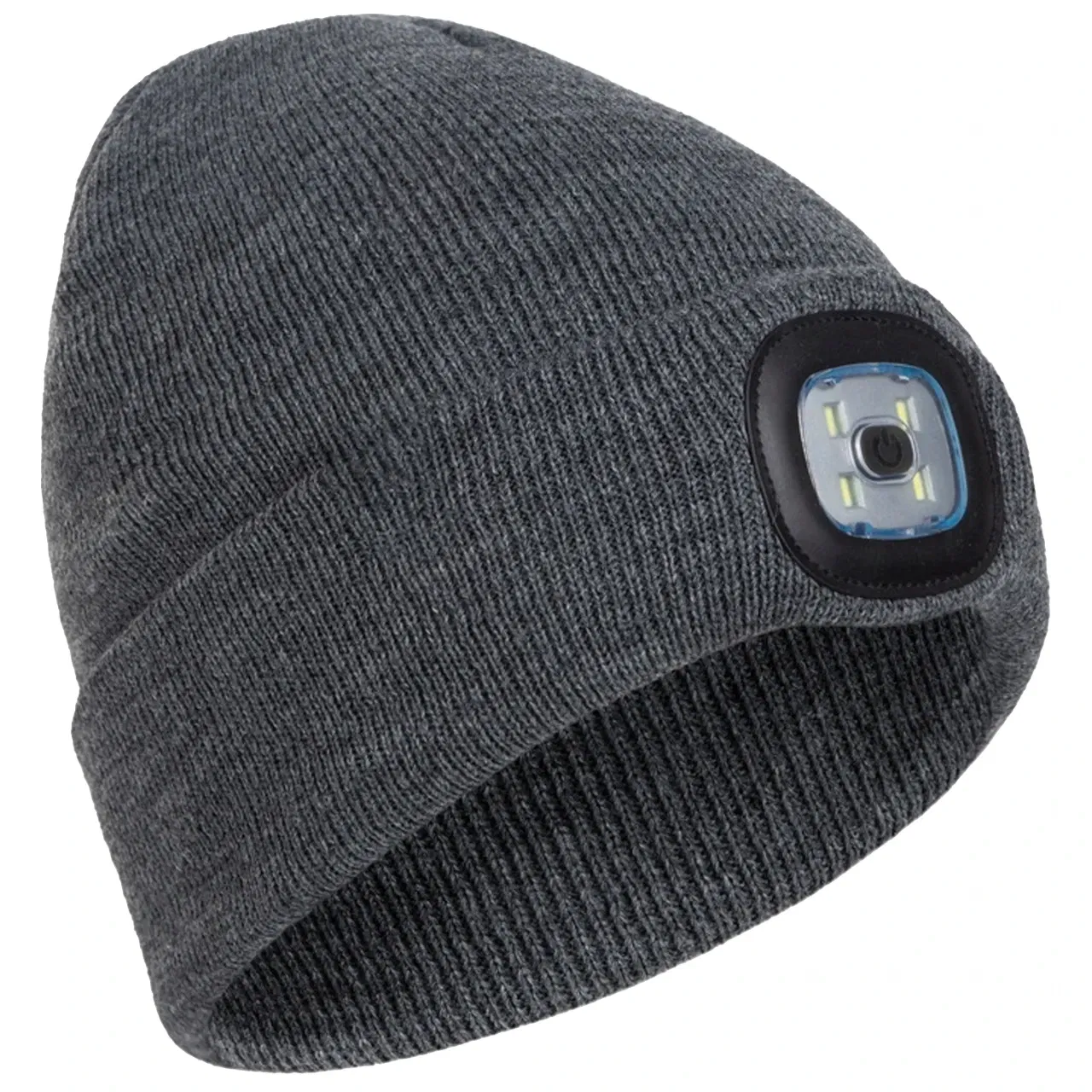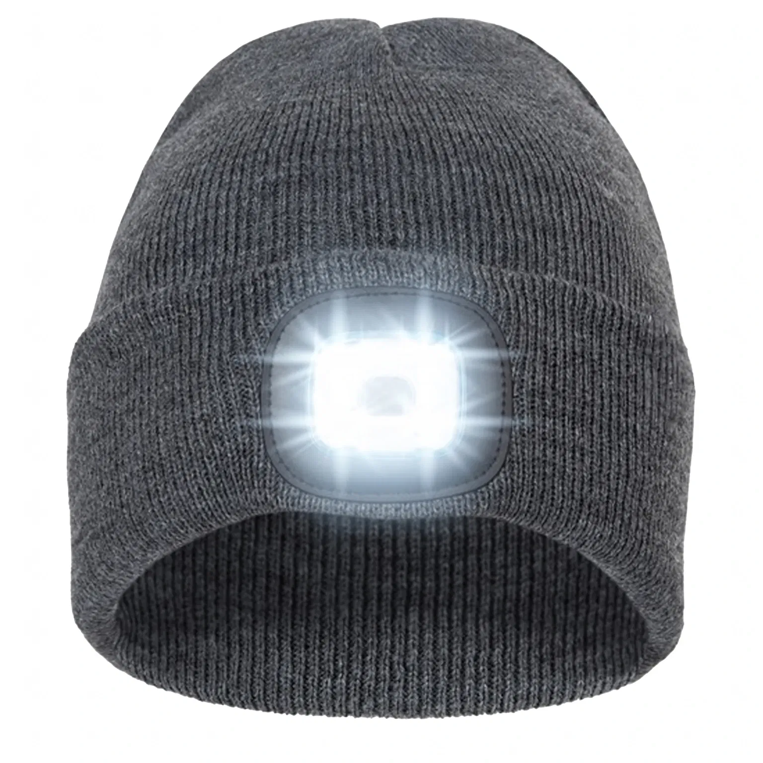 Czapka Zimowa z Latarką Led Lampką Czołówka Robocza do Biegania Szara