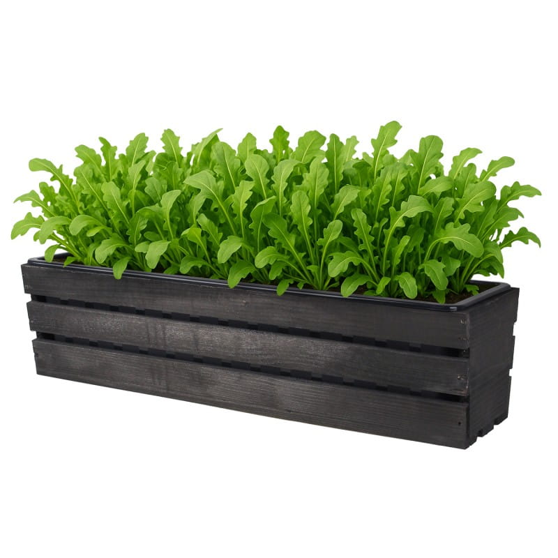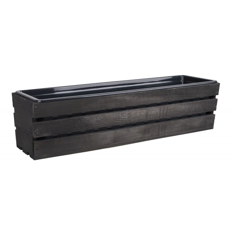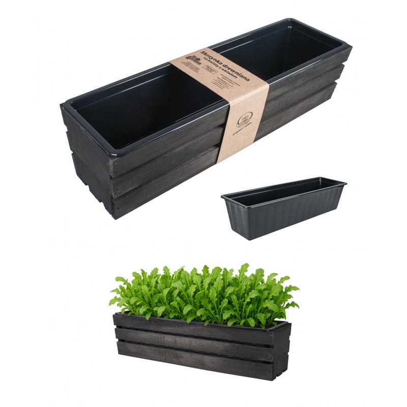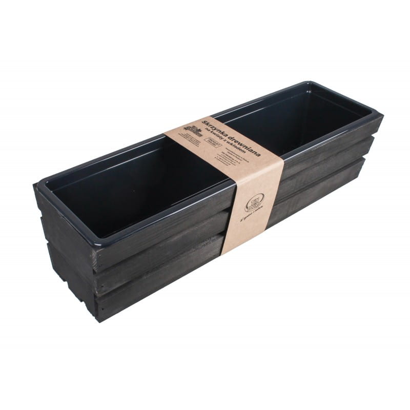 CZARNA DREWNIANA SKRZYNKA NA KWIATY I ZIOŁA Z WKŁADEM 60x18x15 cm