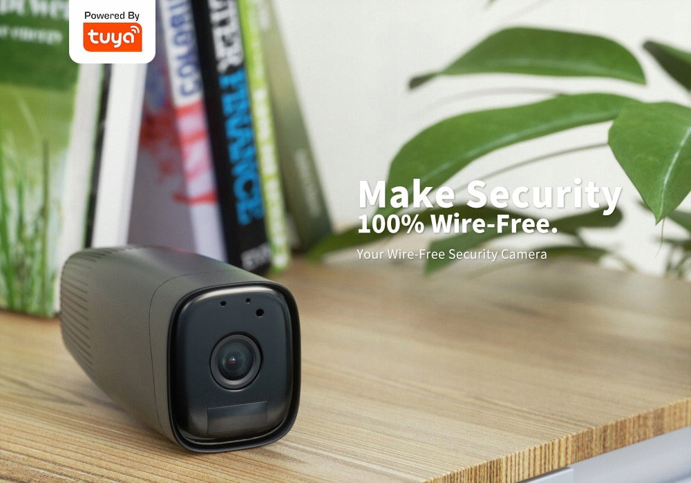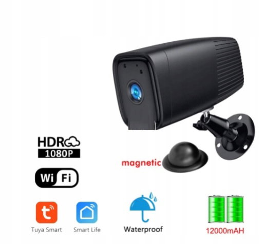Czarna Kamera bezprzewodowa WIFI na baterie Tuya