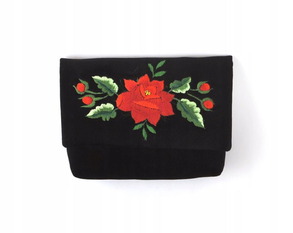 CZARNA KOPERTÓWKA FOLK Z HAFTEM ŁOWICKIM - CZERWONA RÓŻA HANDMADE