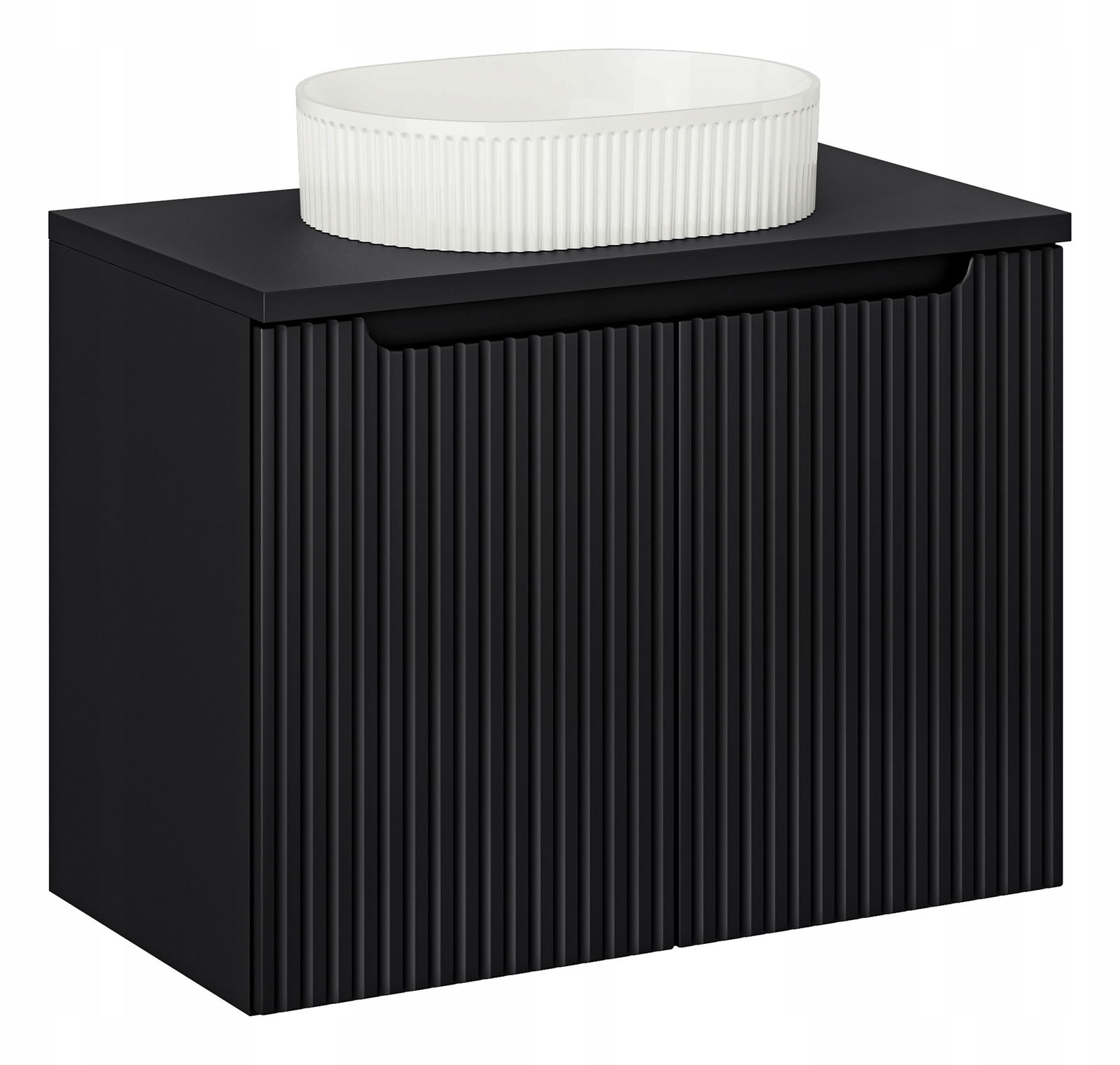 CZARNA RYFLOWANA szafka łazienkowa NOVA BLACK z umywalką i blatem 80 cm