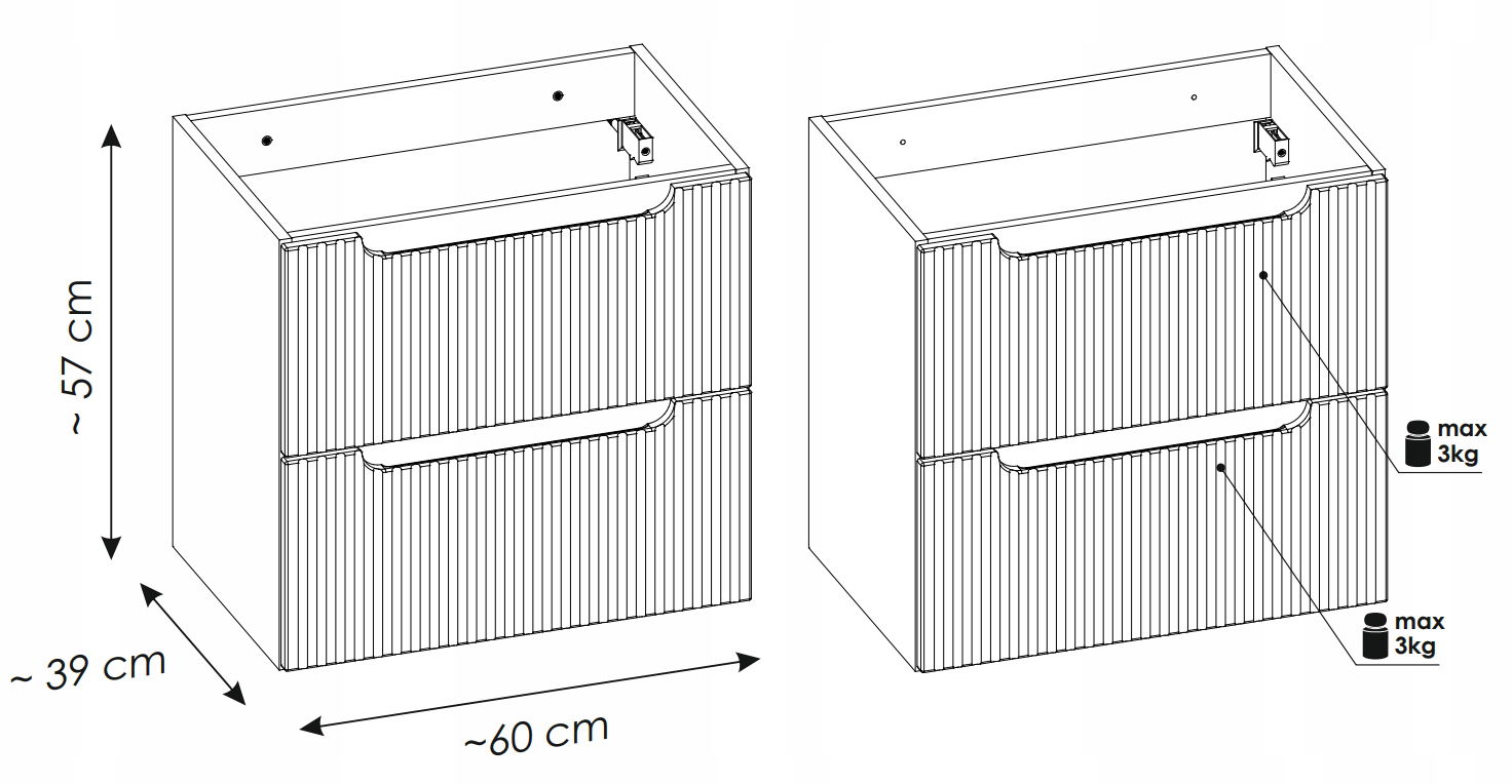 Fronty mebli zdobią pionowe ryflowania, dodając kolekcji miękkiej głębi i unikalnego charakteru. Ten szczegółowy akcent nadaje meblom wyjątkowego wyrazu, który wyróżnia je spośród innych.