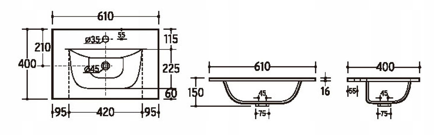 ☑️ 1x umywalka meblowa SKY 3 WHITE GLOSS 60x40 cm