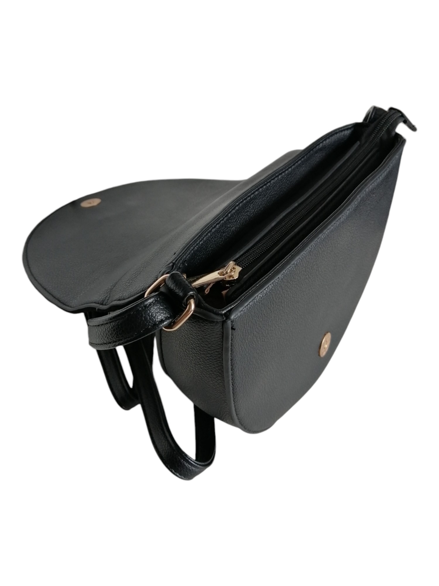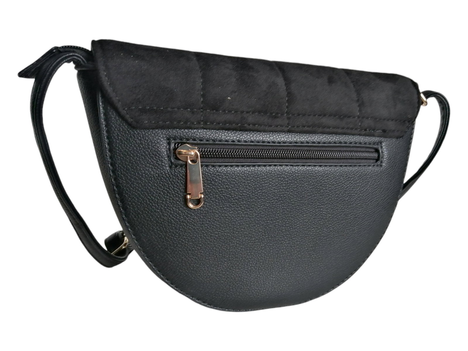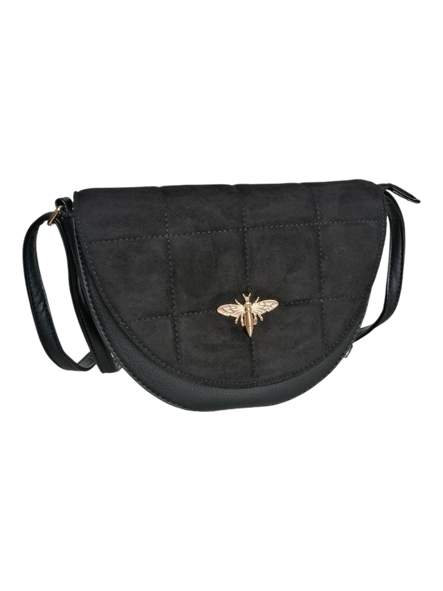 CZARNA ZAMSZOWA MAŁA TOREBKA DAMSKA Z MUCHĄ - LISTONOSZKA DAMSKA NA RAMIĘ