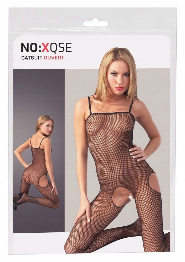 Siateczkowy kombinezon wykonany z czarnej elastycznej siateczki. Tutaj nic nie jest pozostawione wyobraźni. W kroku i na boki prowokacyjnie otwarte. Wąskie paski. Ze stopą. Produkowane bez szwu. 100% poliamid.