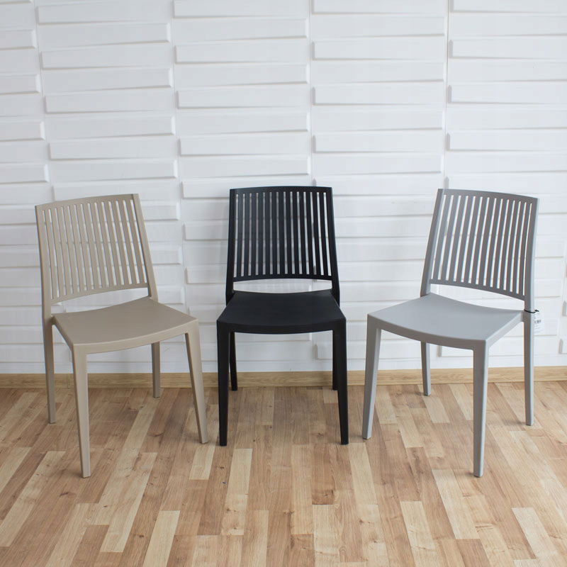 Krzesło dostępne również w kolorze szarym i beżowym.