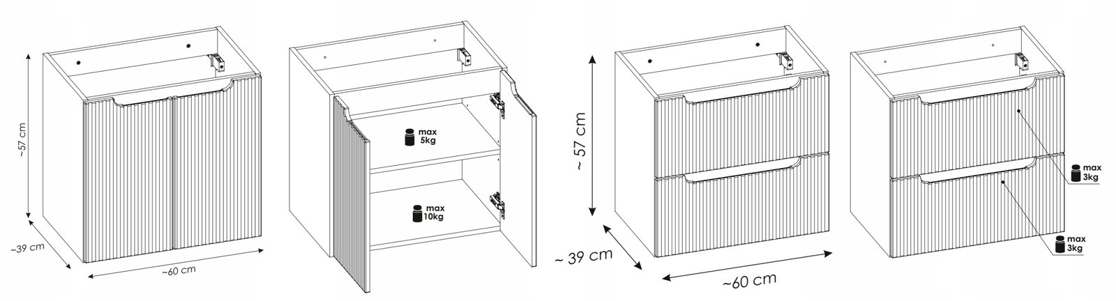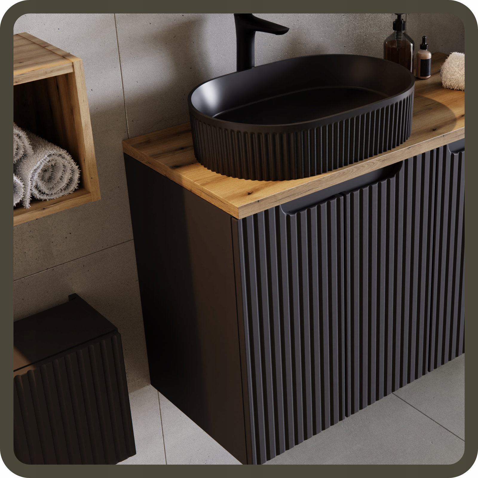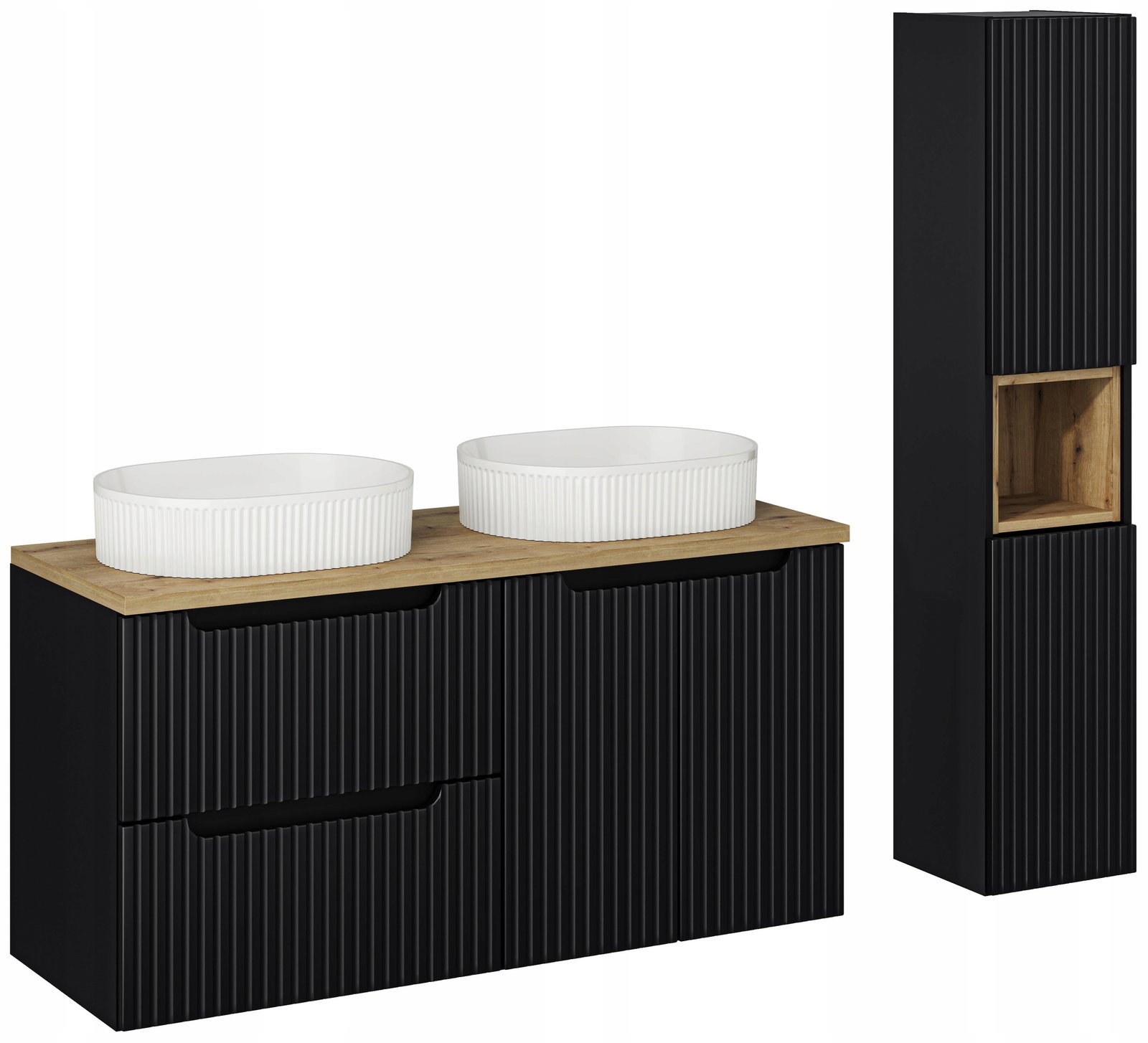 CZARNE RYFLOWANE meble łazienkowe NOVA BLACK szafka 120 cm umywalki słupek