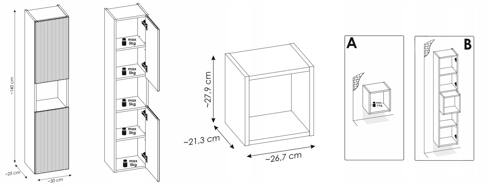 ✅ wybór montażu regału: na ścianie lub jako wkład do słupka