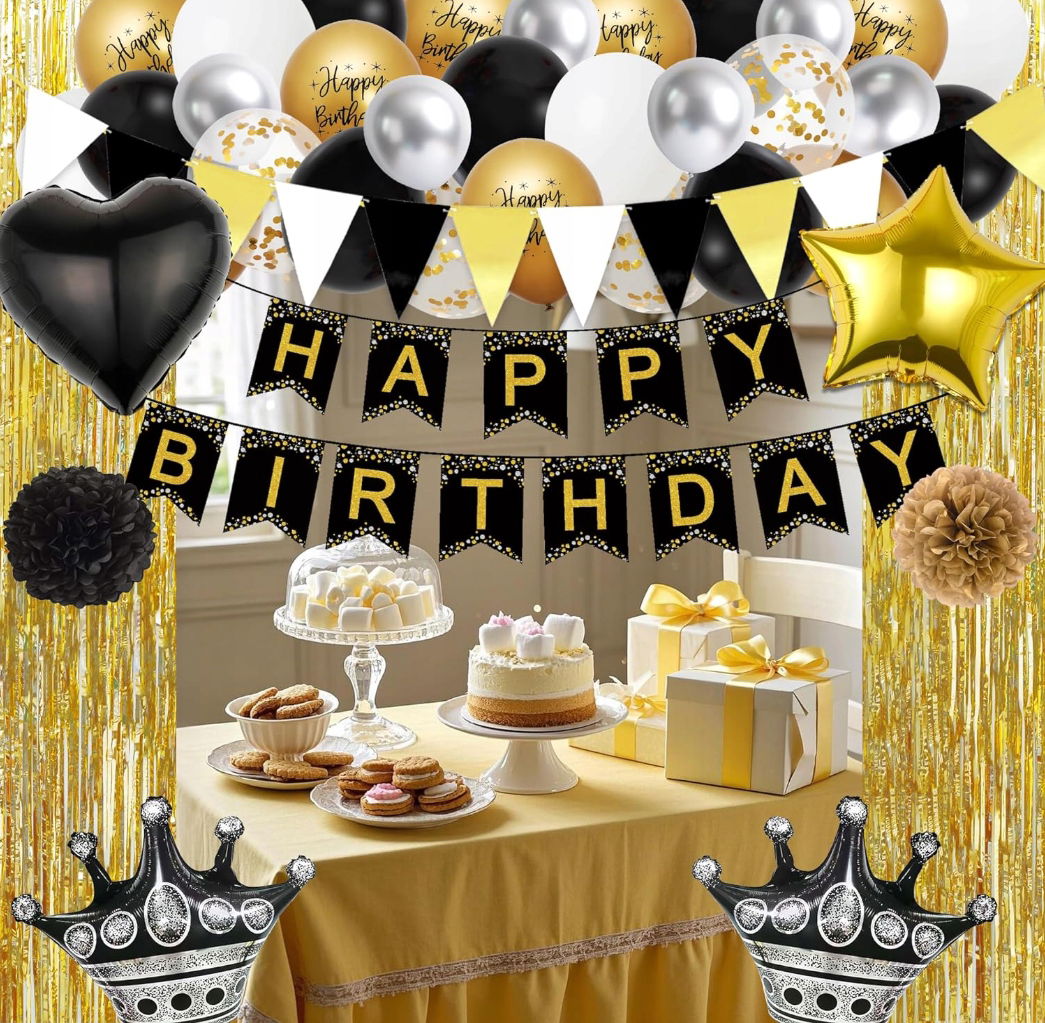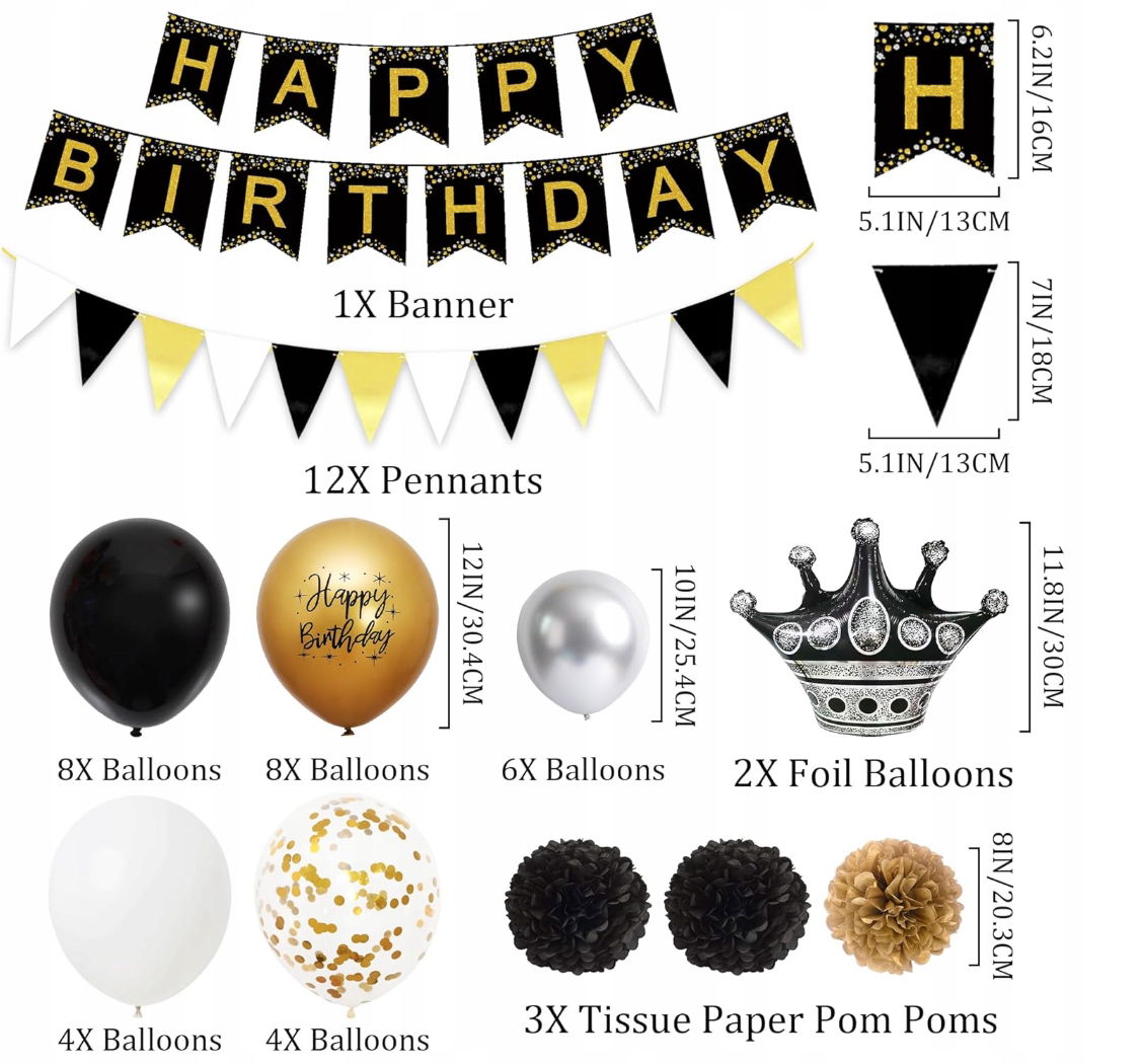Czarno-złoty zestaw dekoracji urodzinowych balony girlandy