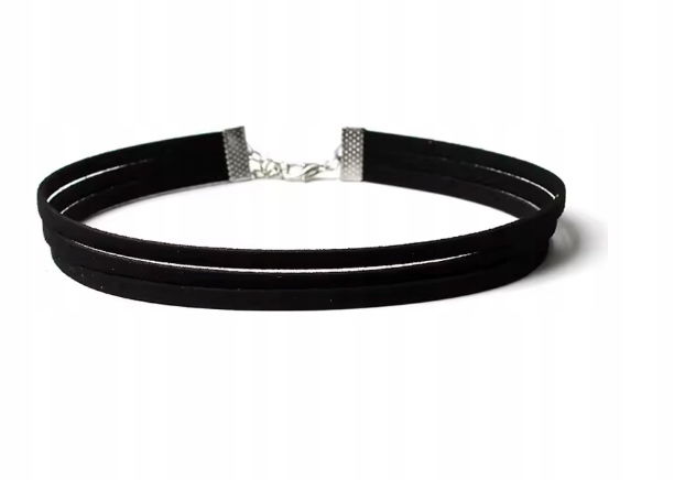 Piękny czarny choker z trzema rzemykami. Nadaje kobiecemu ciału seksapilu. Jest to doskonały pomysł na prezent.