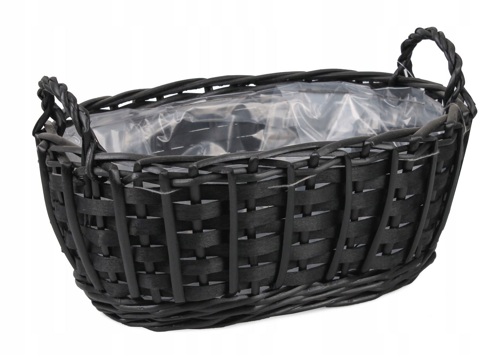 CZARNY OWALNY KOSZYK WIKLINOWY DO OBSADZANIA Z FOLIĄ 29x20x12/17 cm