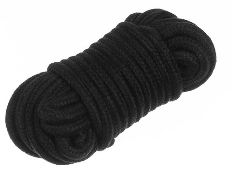 Gadżet erotyczny BDSM - czarna lina do krępowania.