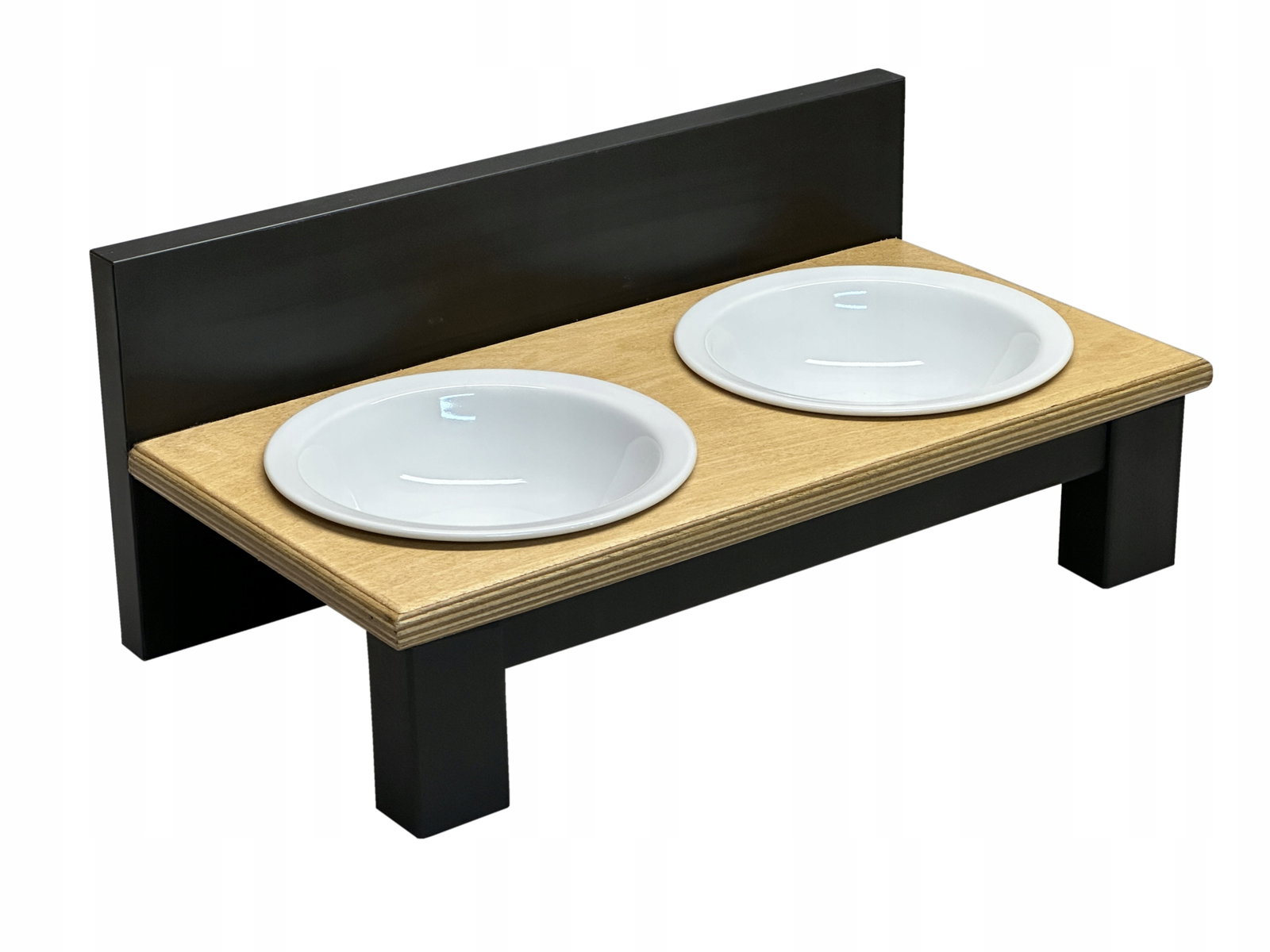 Stojak z dwiema miskami ceramicznymi o średnicy 14 cm. / wysokość 4 cm / Pojemność 250 ml