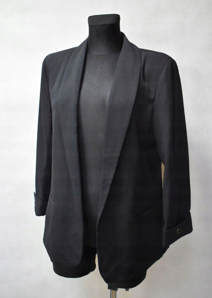 Czarny kolor nadaje żakietowi wyjątkowego charakteru i sprawia, że świetnie będzie się prezentował zarówno na co dzień, jak i na specjalne okazje.