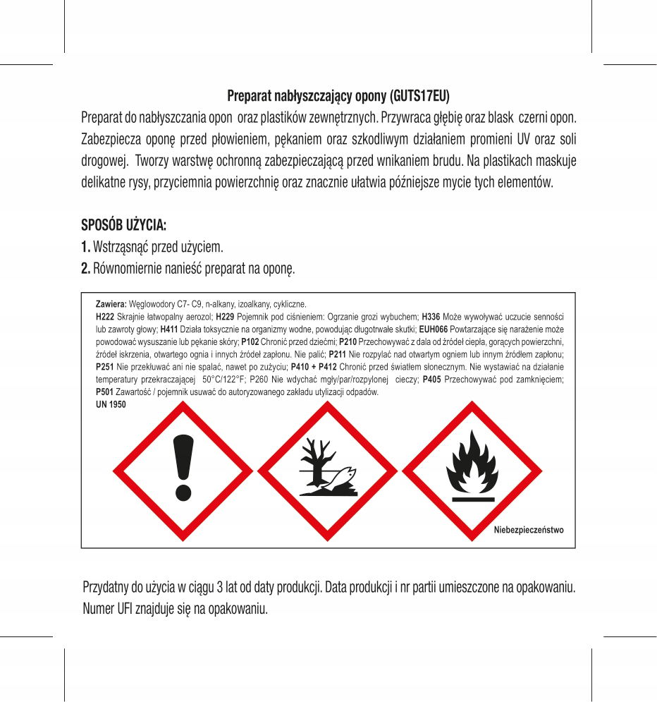 ☑️ Ochrona i trwałość: Zabezpiecza opony przed płowieniem, pękaniem oraz szkodliwym działaniem promieni UV i soli drogowej.