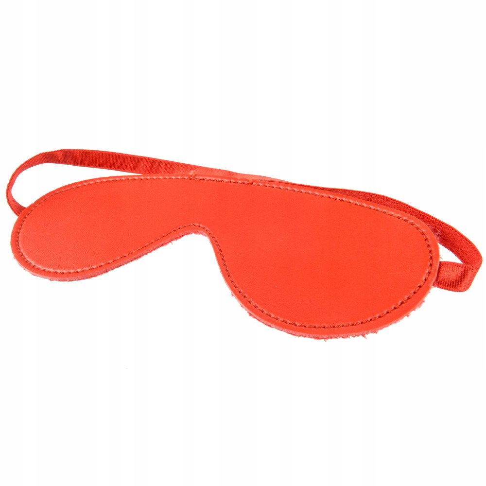 Gadżet erotyczny BDSM - czerwona skórzana maska na oczy.