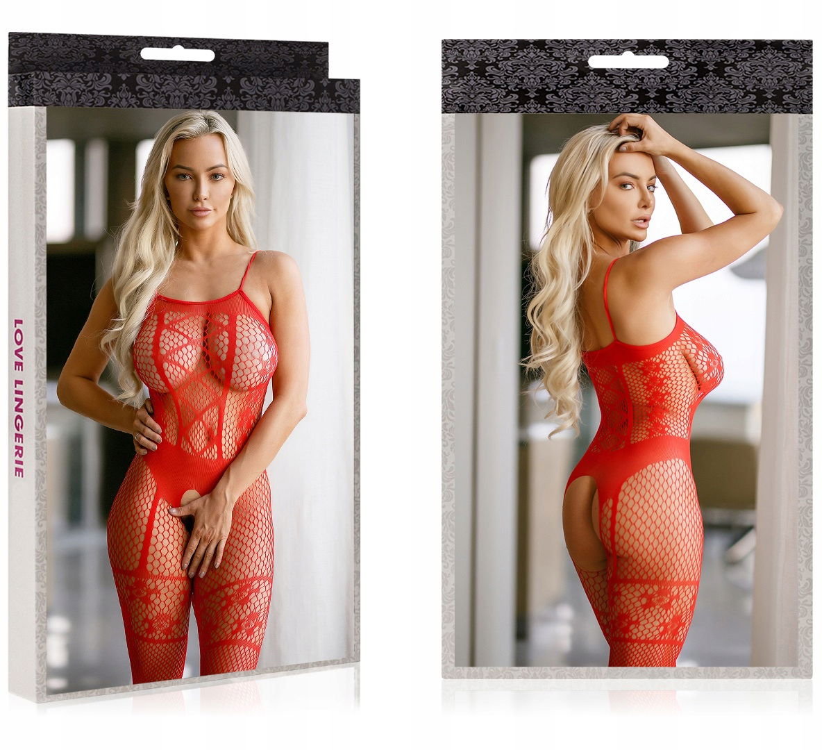 Czerwone Otwarte Body Siatka Bielizna Kombinezon