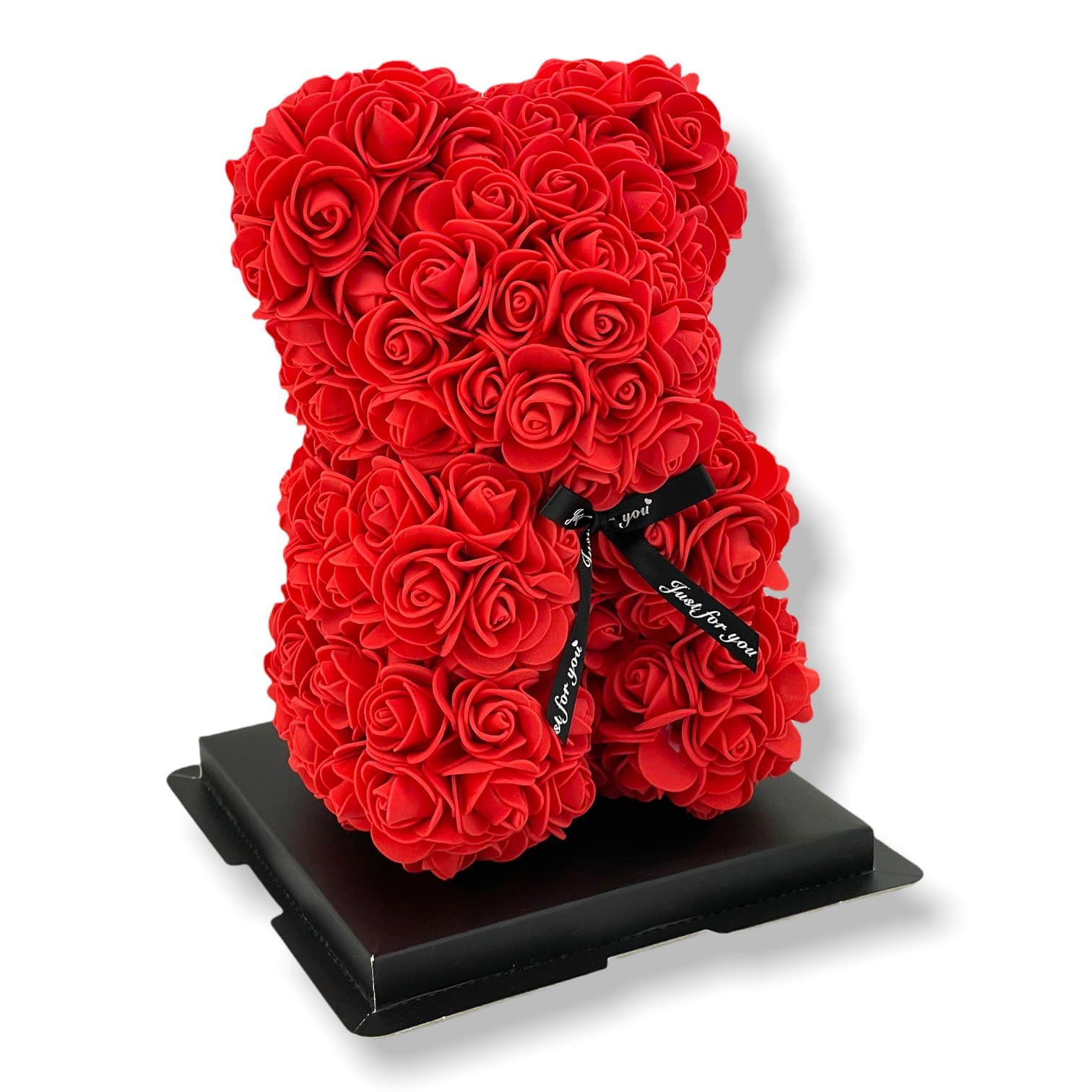 Połączenie piankowych róż i misia wydaje się idealne na prezent dla kobiety. To urocza i romantyczna niespodzianka zapakowana w eleganckim, przeźroczystym opakowaniu, przewiązanym wstążką.