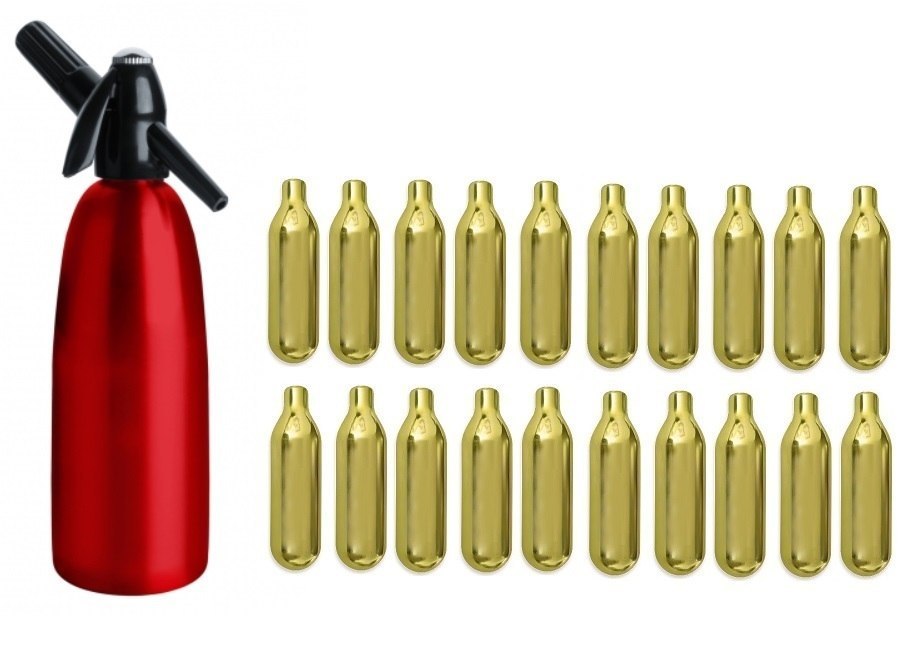 Czerwony Syfon Do Wody Sodowej Saturator 1l + Zestaw Naboi CO2 20 Szt.