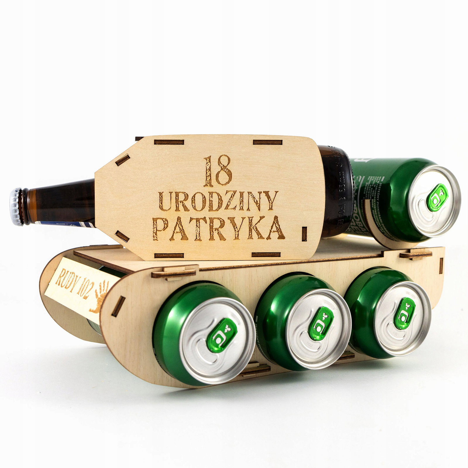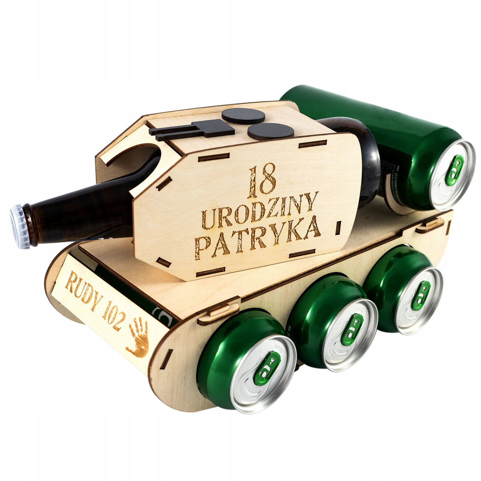 W zestawie nie ma alkoholu . Przedmiotem jest wyłącznie czołg wykonany z twardej sklejki brzozowej 3mm
