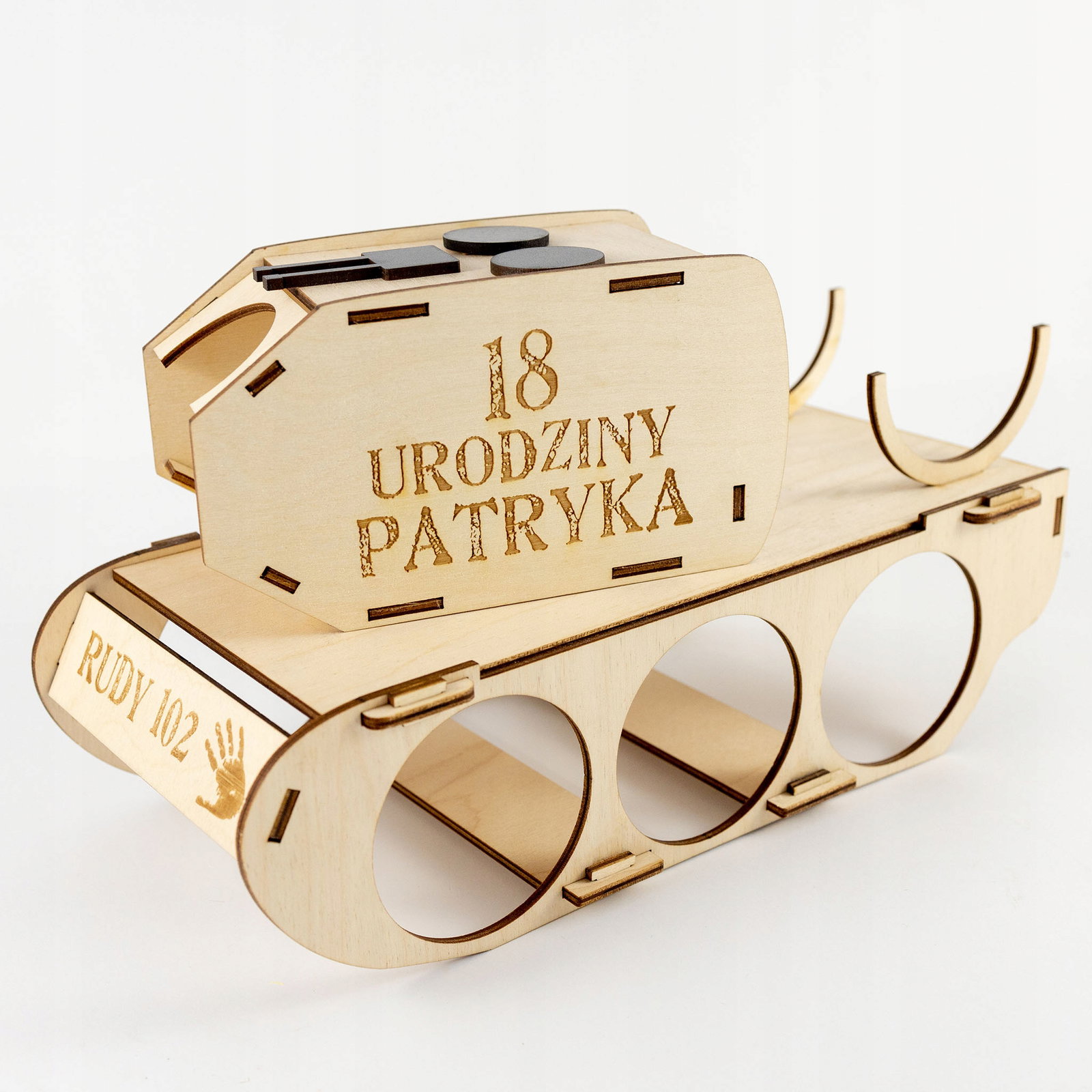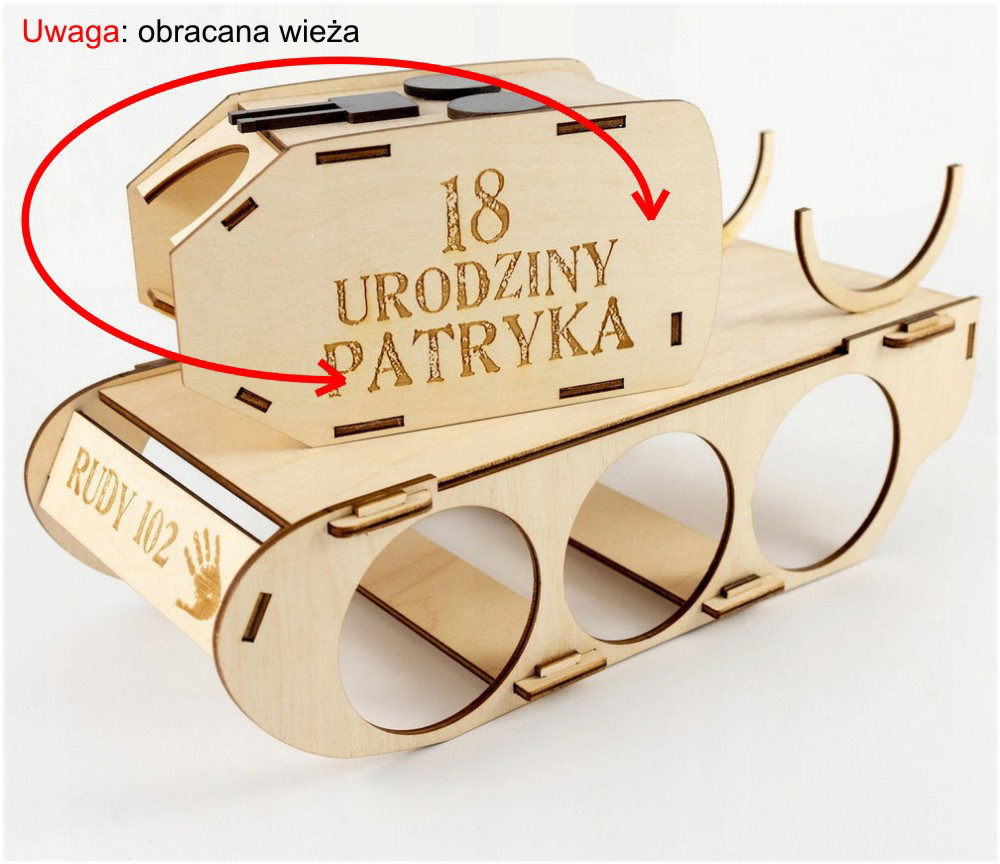 Na czołgu będzie wygrawerowany napis według wzoru lub inny Twój indywidualny tekst. Jeśli mamy wygrawerować inny tekst - wpisz go w wiadomości do sprzedającego podczas finalizacji transakcji.