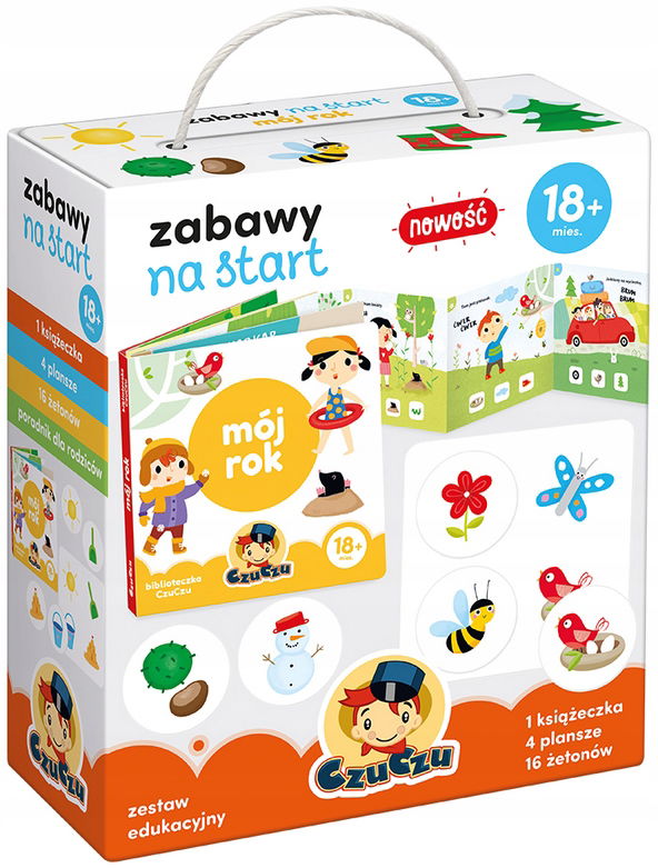 Zestaw edukacyjny w przystępny i przyjazny sposób porusza tematykę bliską maluchom to, co dzieje się wokół nich w ciągu roku.