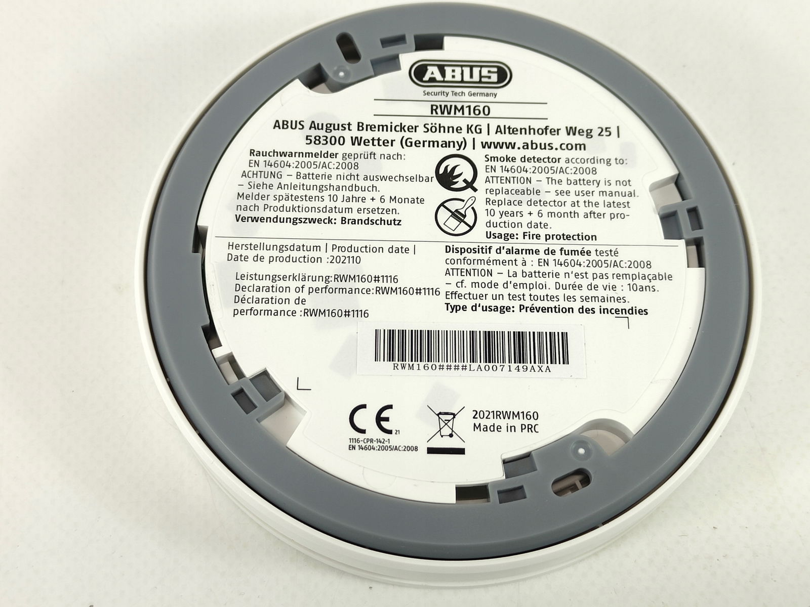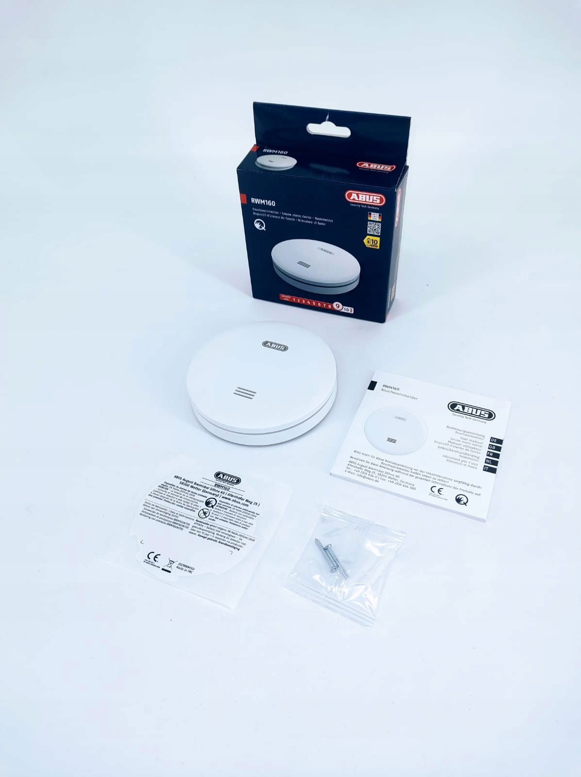 Czujnik dymu ABUS RWM160 o wysokości 2,3 cm jest wyjątkowo płaską konstrukcją i zapewnia bezpieczeństwo przeciwpożarowe w promieniu około 40 metrów kwadratowych.