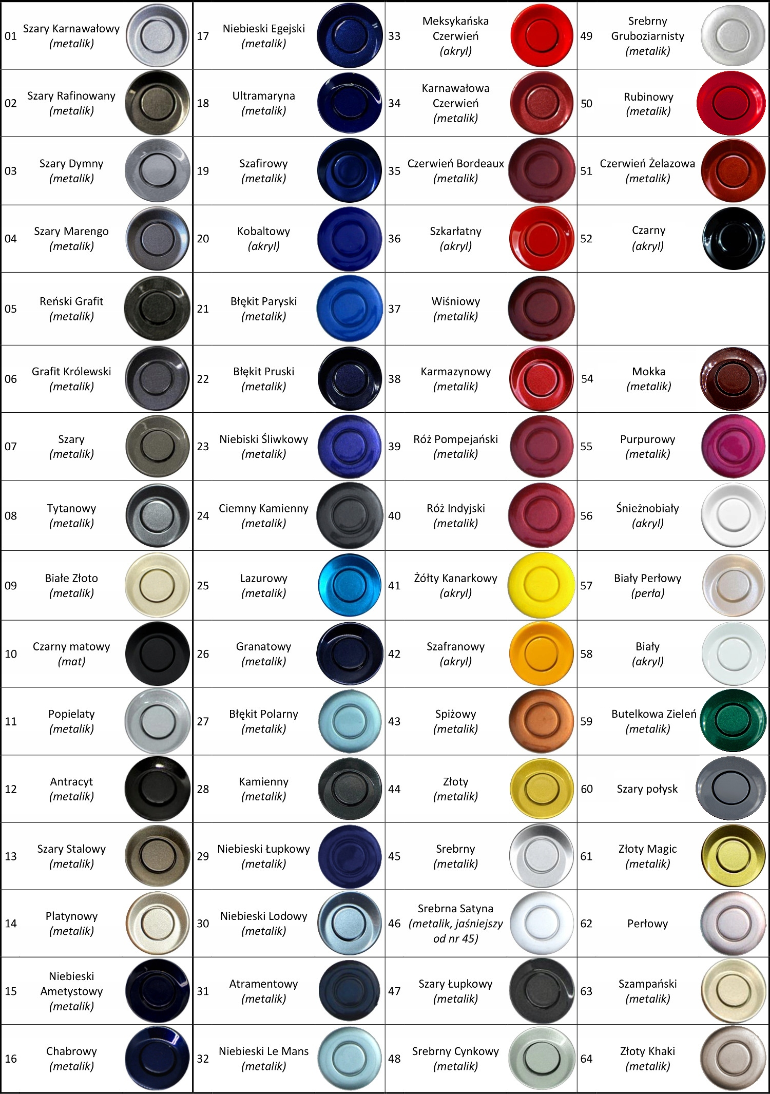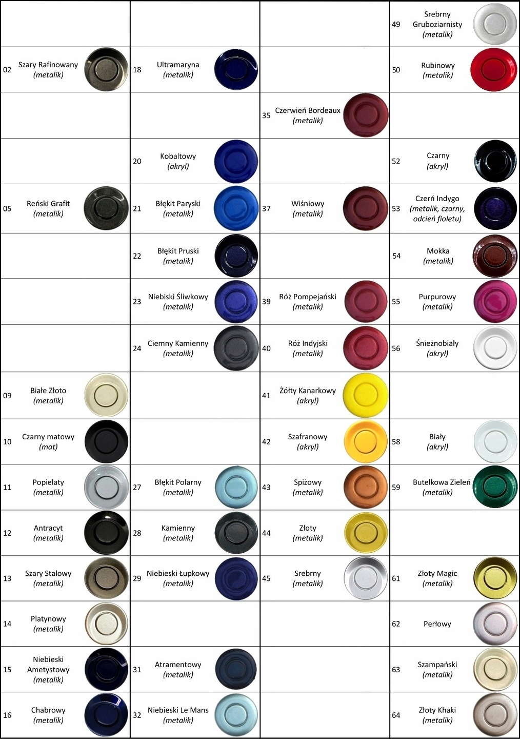 Poniżej w opisie znajduje się tabela z dostępnymi kolorami. Wybrany przez Państwa numer koloru prosimy wpisać w trakcie składania zamówienia lub niezwłocznie po złożonym zamówieniu poprzez wiadomość lub pytanie do Sprzedającego.