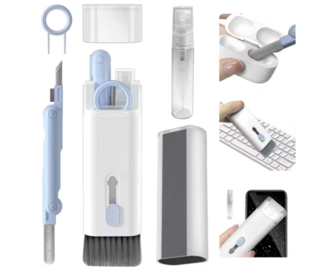 CZYŚCIK DO KLAWIATURY SŁUCHAWEK SZCZOTECZKA GĄBKA DOZOWNIK ZESTAW 7W1
