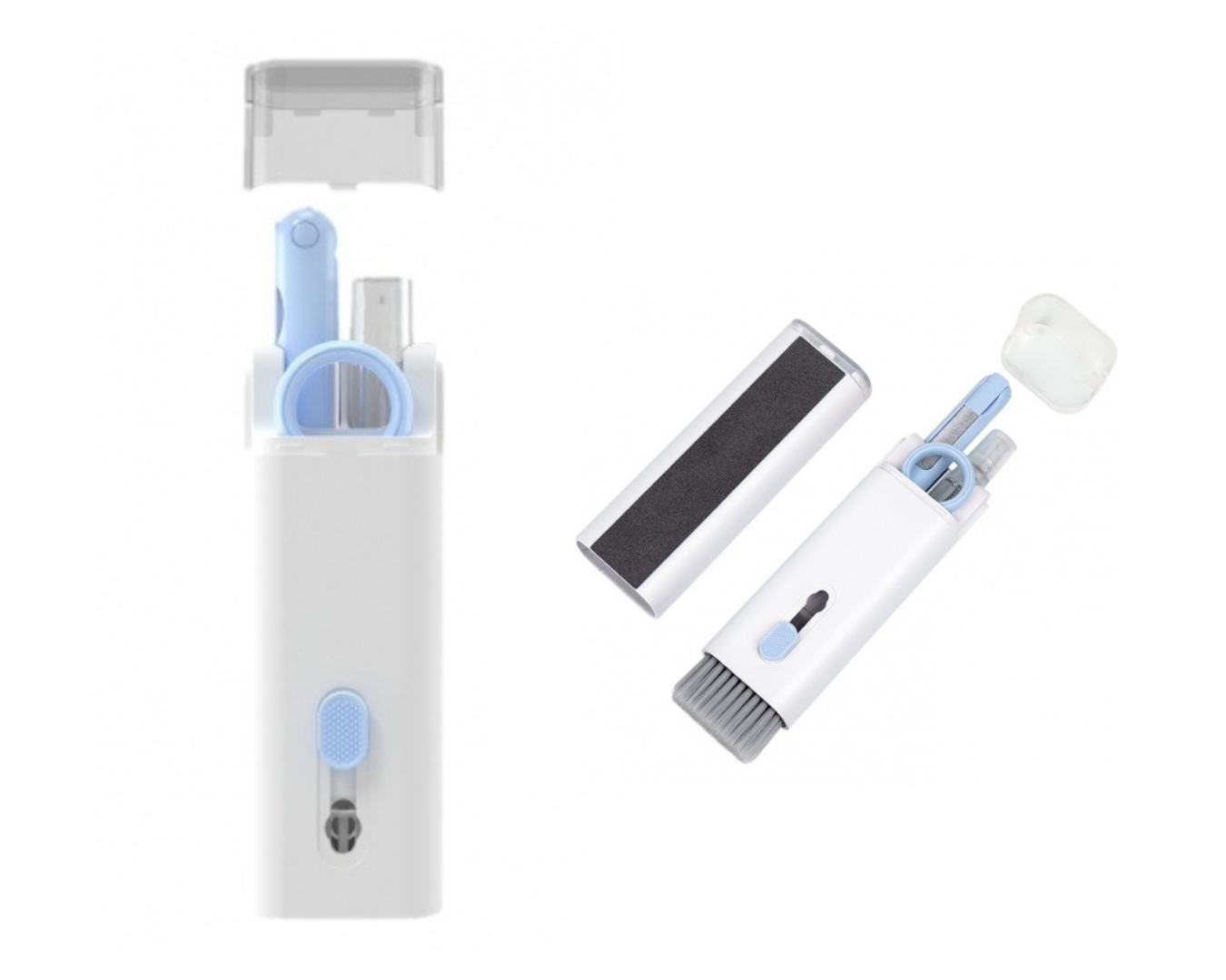 Nasz wielofunkcyjny zestaw czyszczący 7w1 to kompletne, kompaktowe studio pielęgnacji Twojego sprzętu. Zaprojektowany, by usuwać wszelki brud, tłuste ślady i kurz, przywracając elektronice nieskazitelny stan!