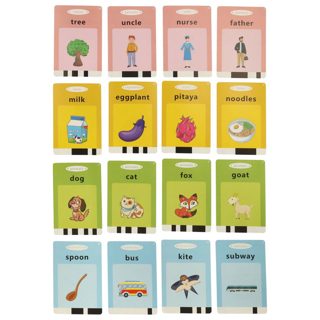 EFEKTYWY SPOSÓB NAUKI - Każda karta z zestawu posiada dwa wgrane słowa, po jednym na każdą stronę oraz odpowiedni rysunek, który pozwala zrozumieć ich znaczenie. Stymuluje zarówno wzrok, jak i słuch dziecka, dzięki czemu z pewnością dopasuje się do najefektywniejszego sposobu uczenia się każdego malucha.