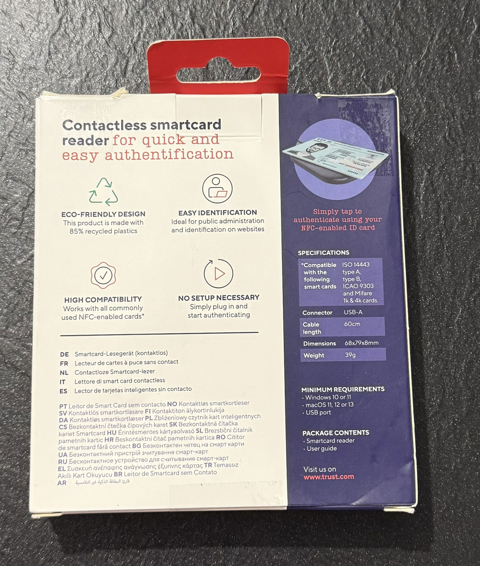 Czytnik kart inteligentnych Trust Ceto Contactless Smart Card, czytnik kart NFC, czytnik kart identyfikacyjnych, czytnik kart USB DNI 3.0 Smart Card Types ISO 14443 Type A, Type B, Mifare 1k i 4k
