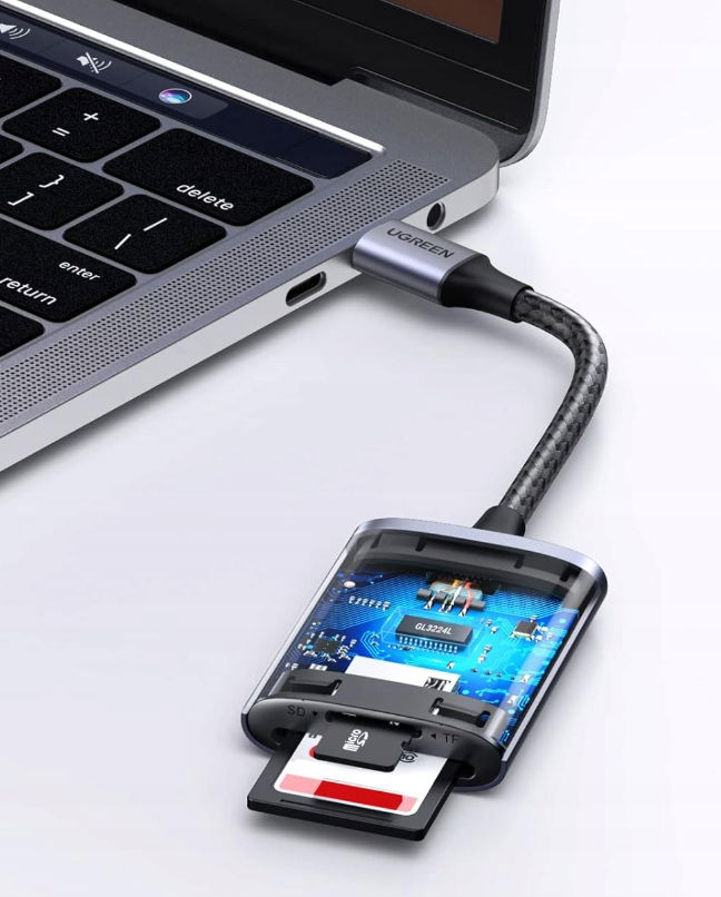 Czytnik kart SD/TF Ugreen CM401 USB C 5Gb/s - szary POWYSTAWOWY