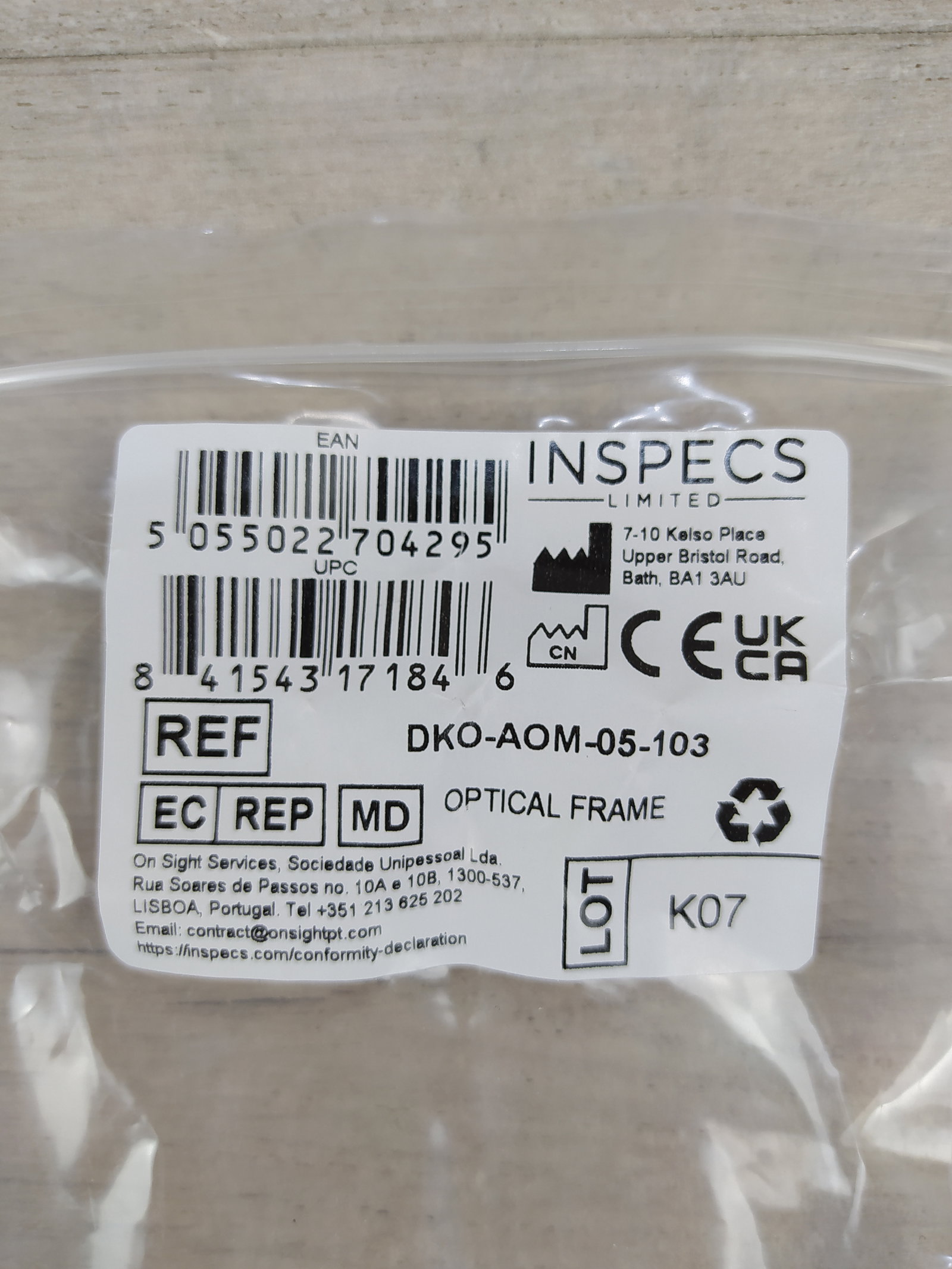 - Rozmiar (w mm): 55-40-140 (szerokość soczewki - szerokość mostka nosowego - długość zausznika). Wymiary są zazwyczaj podane trzycyfrowo na wewnętrznej stronie oprawki. Wysokość soczewki: 40 mm.