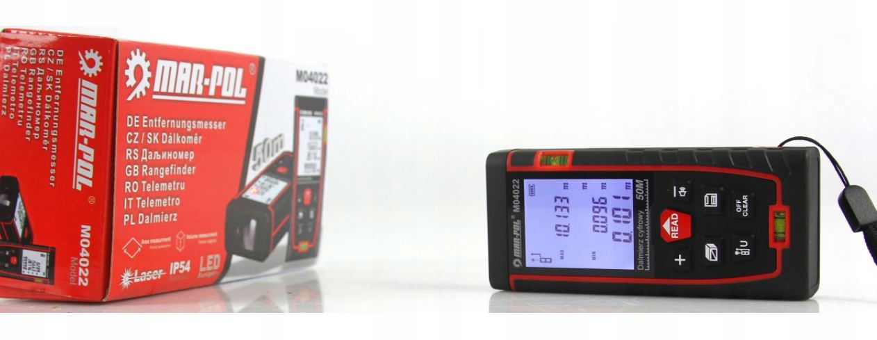 • posiada podświetlany wyświetlacz oraz poziomicę