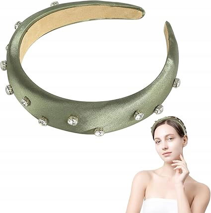 Damska satynowa opaska na głowę z dżetów, szeroka satynowa opaska na głowę