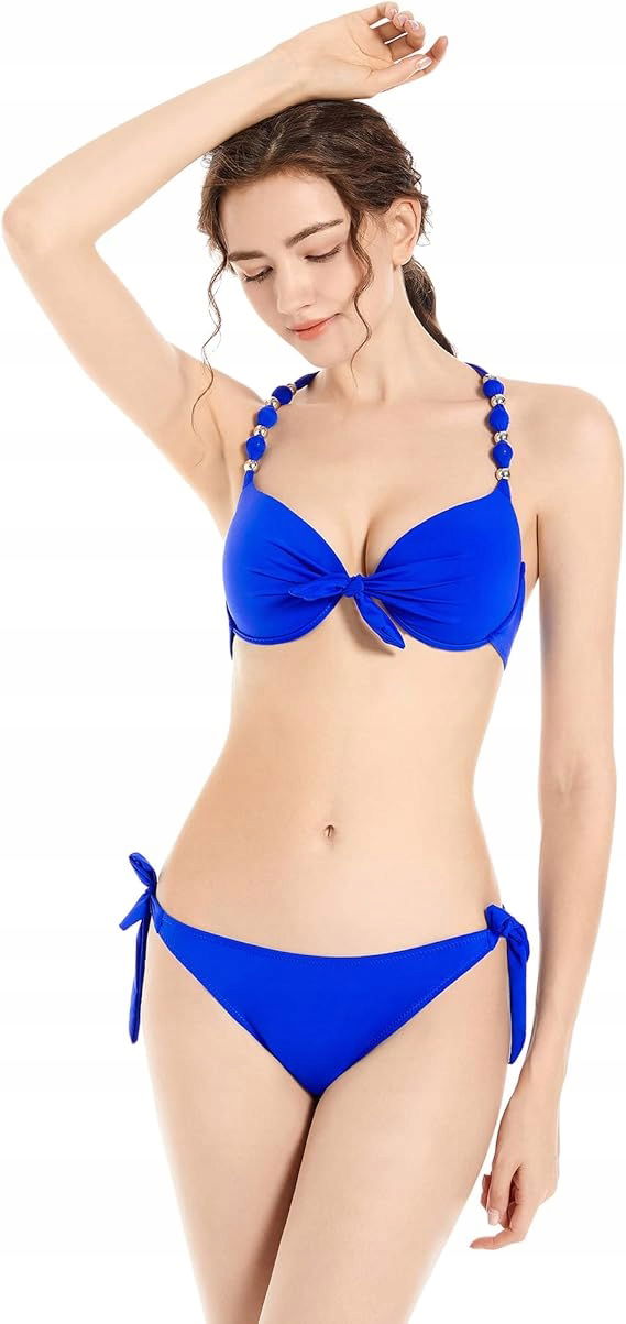 Zestaw bikini dla kobiet. Góra od bikini push-up z regulowanym wiązaniem z boku, stroje kąpielowe z paskiem na szyję, bikini z regulowanymi wiązaniami po bokach, dwuczęściowy strój kąpielowy dla kobiet.