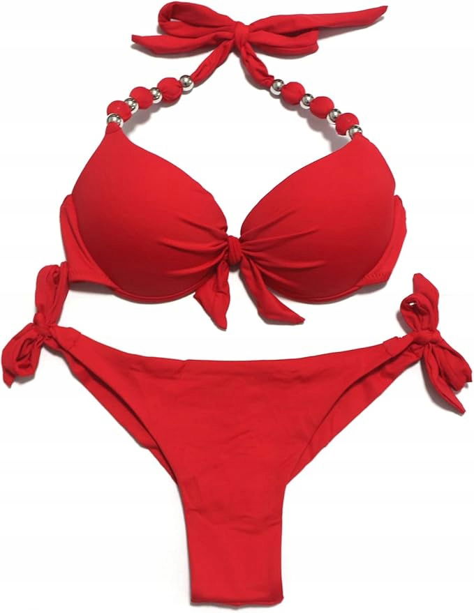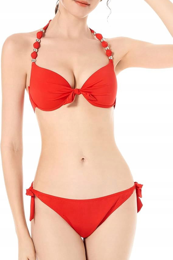 Zestaw bikini dla kobiet. Góra od bikini push-up z regulowanym wiązaniem z boku, stroje kąpielowe z paskiem na szyję, bikini z regulowanymi wiązaniami po bokach, dwuczęściowy strój kąpielowy dla kobiet.