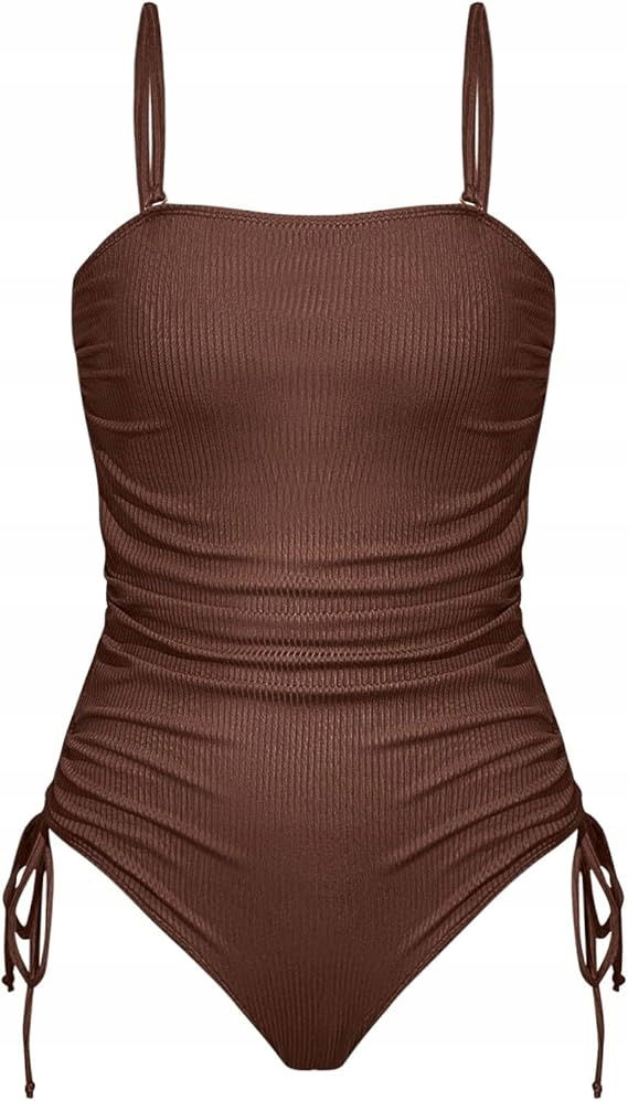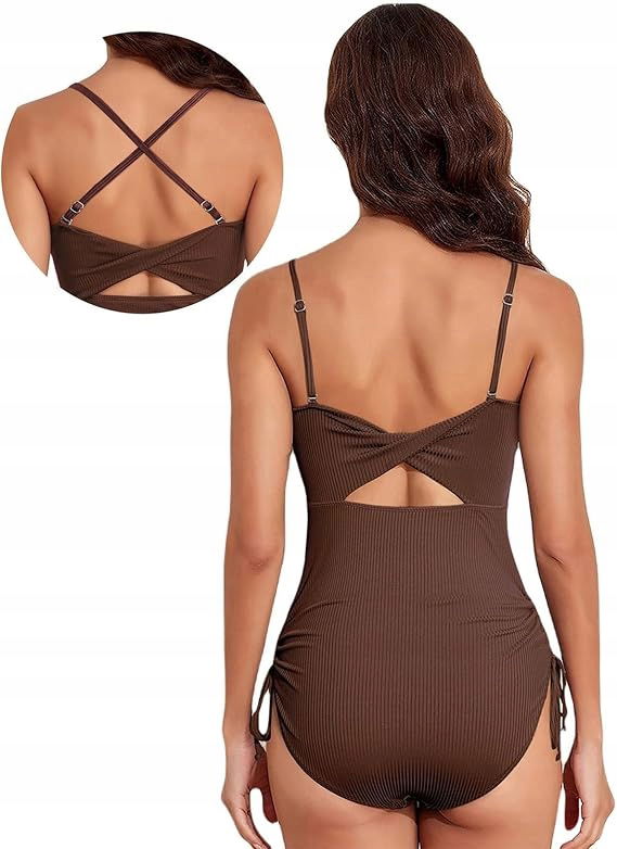 Strój kąpielowy na ramiączkach: Ten jednoczęściowy kostium kąpielowy ma dekolt typu bandeau, sznurek ściągający z boku, głęboki dekolt na plecach i seksowne figi, dzięki czemu będziesz czuć się komfortowo i wyglądać korzystnie.
