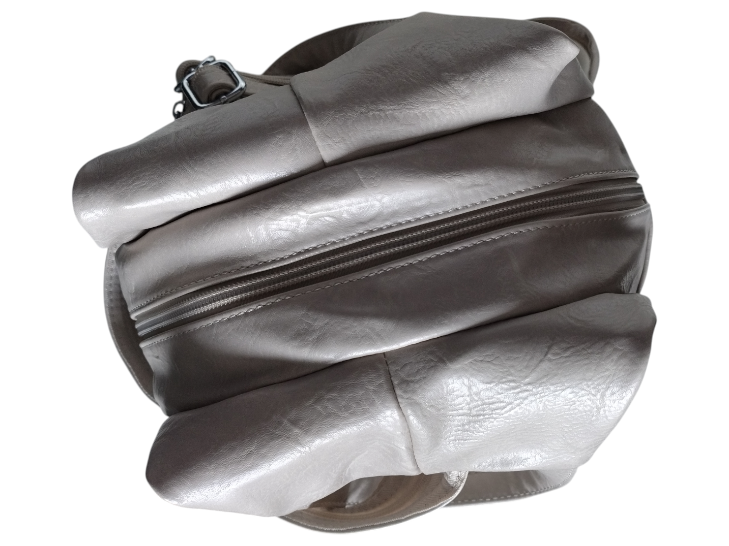 Informacja o Bespieczeństwie: Torebka do użytku codziennego. Nieodpowiednia dla dzieci – ryzyko uduszenia / skaleczenia małymi elementami i paskami. Używać zgodnie z przeznaczeniem. Nie przeciążać. Trzymać z dala od ognia i wysokiej temperatury. Czyszczenie wilgotną miękką ściereczką; nie prać; nie używać rozpuszczalników