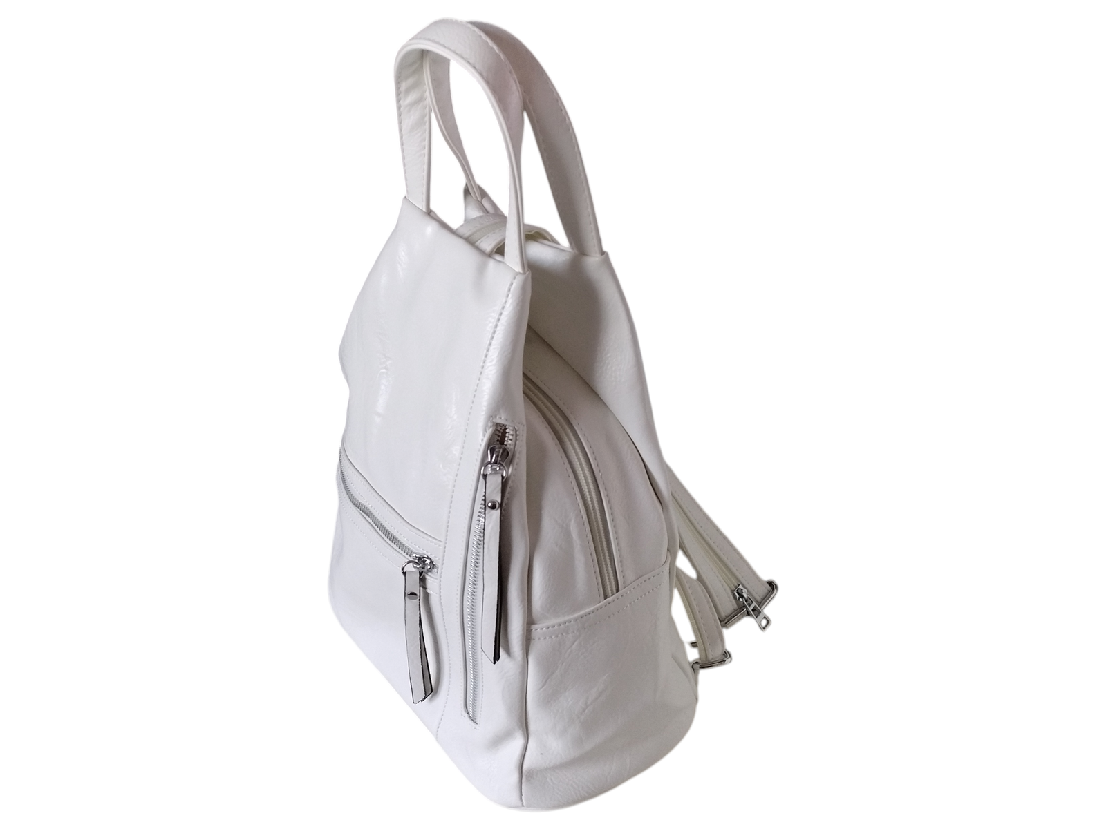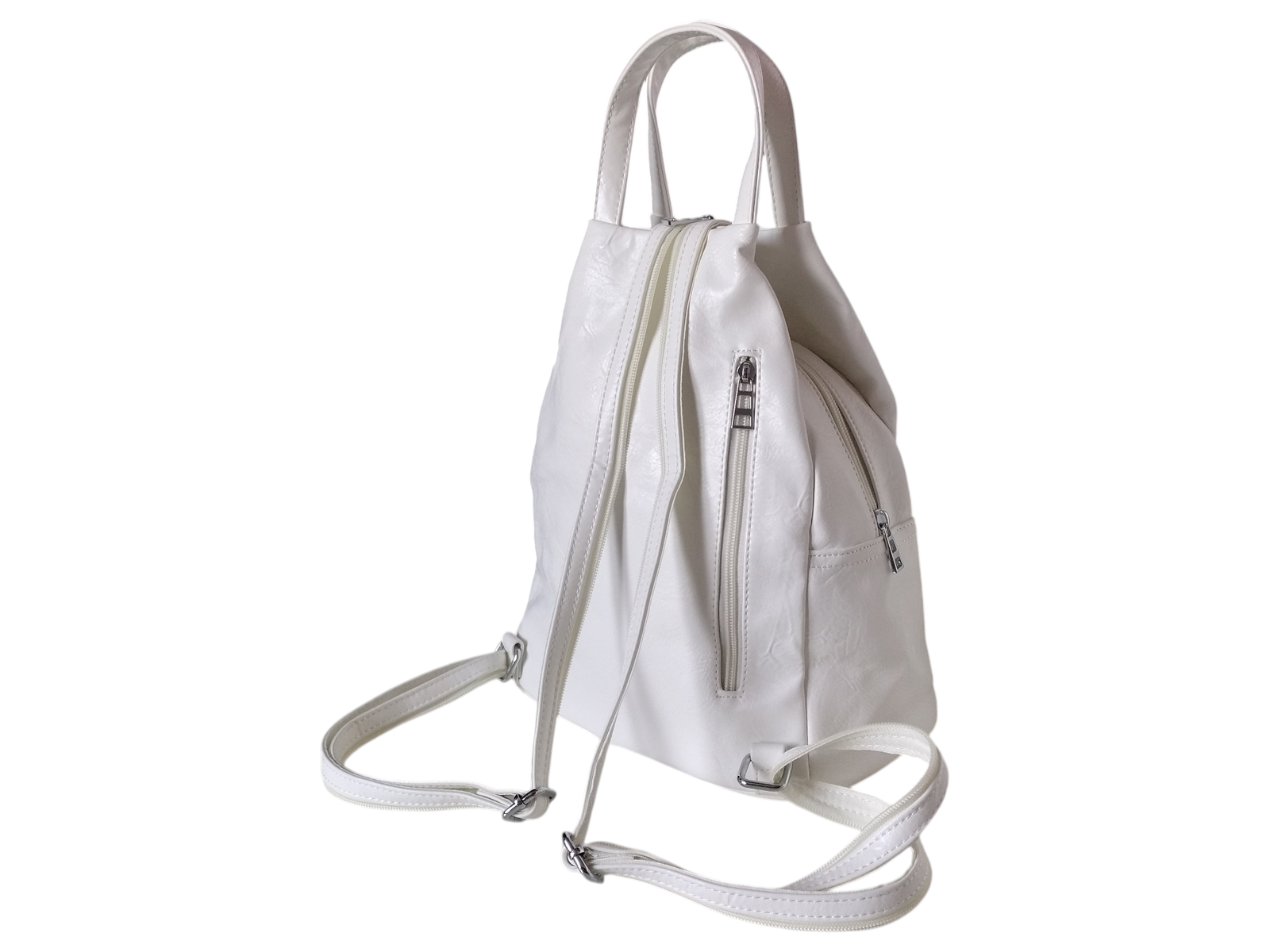 Damski, Plecak Modny Worek Na Ramię, Skóra Ekologiczna 6 Kieszeni, Biały
