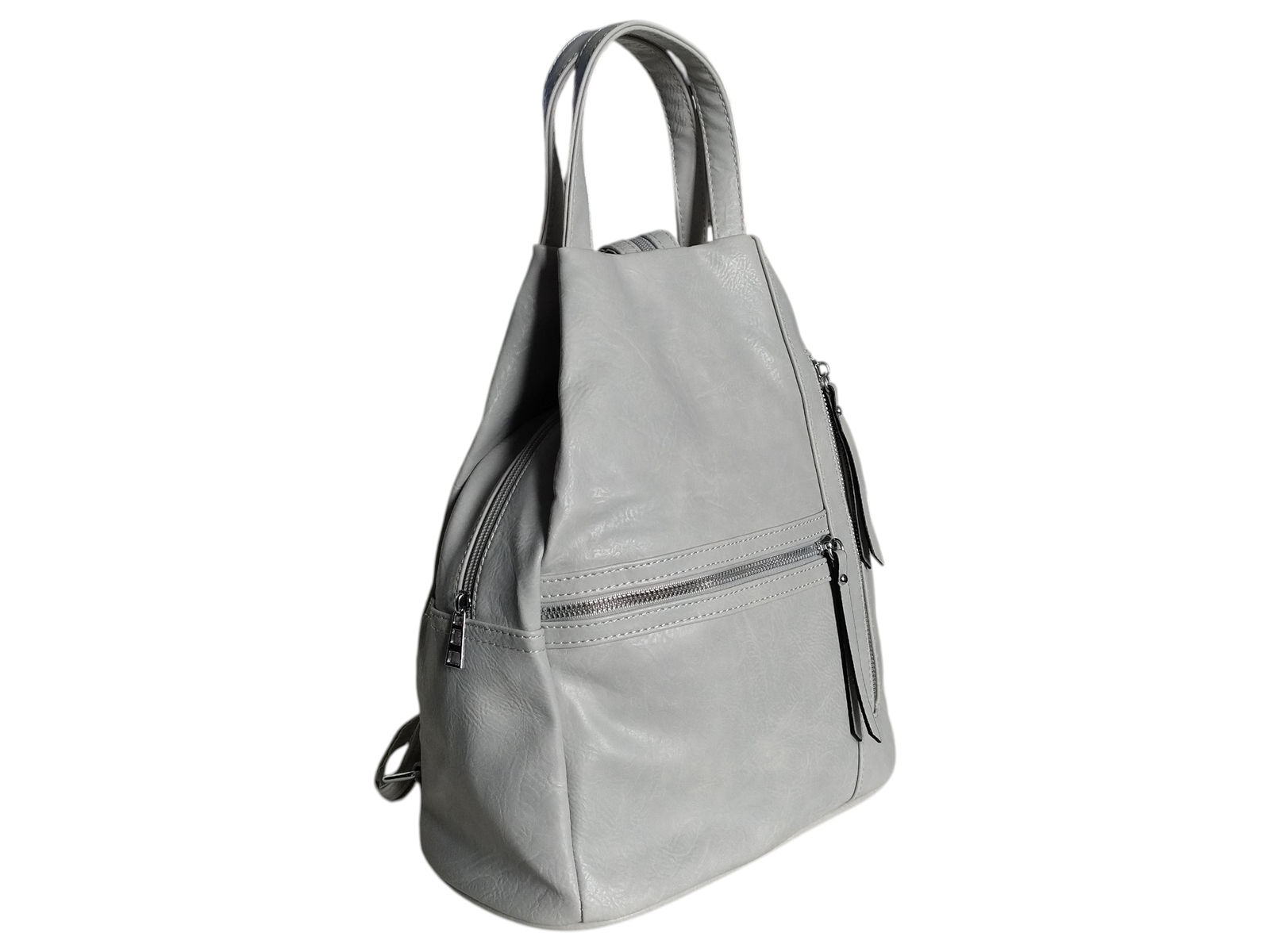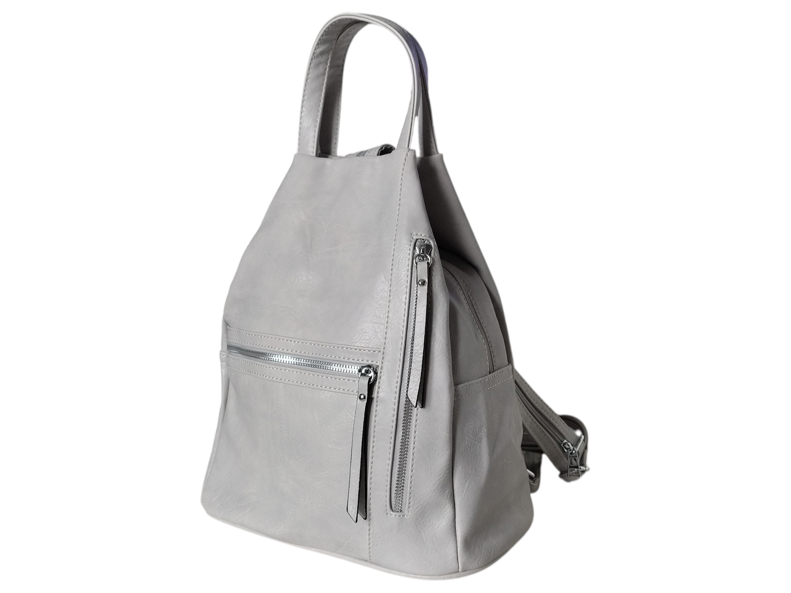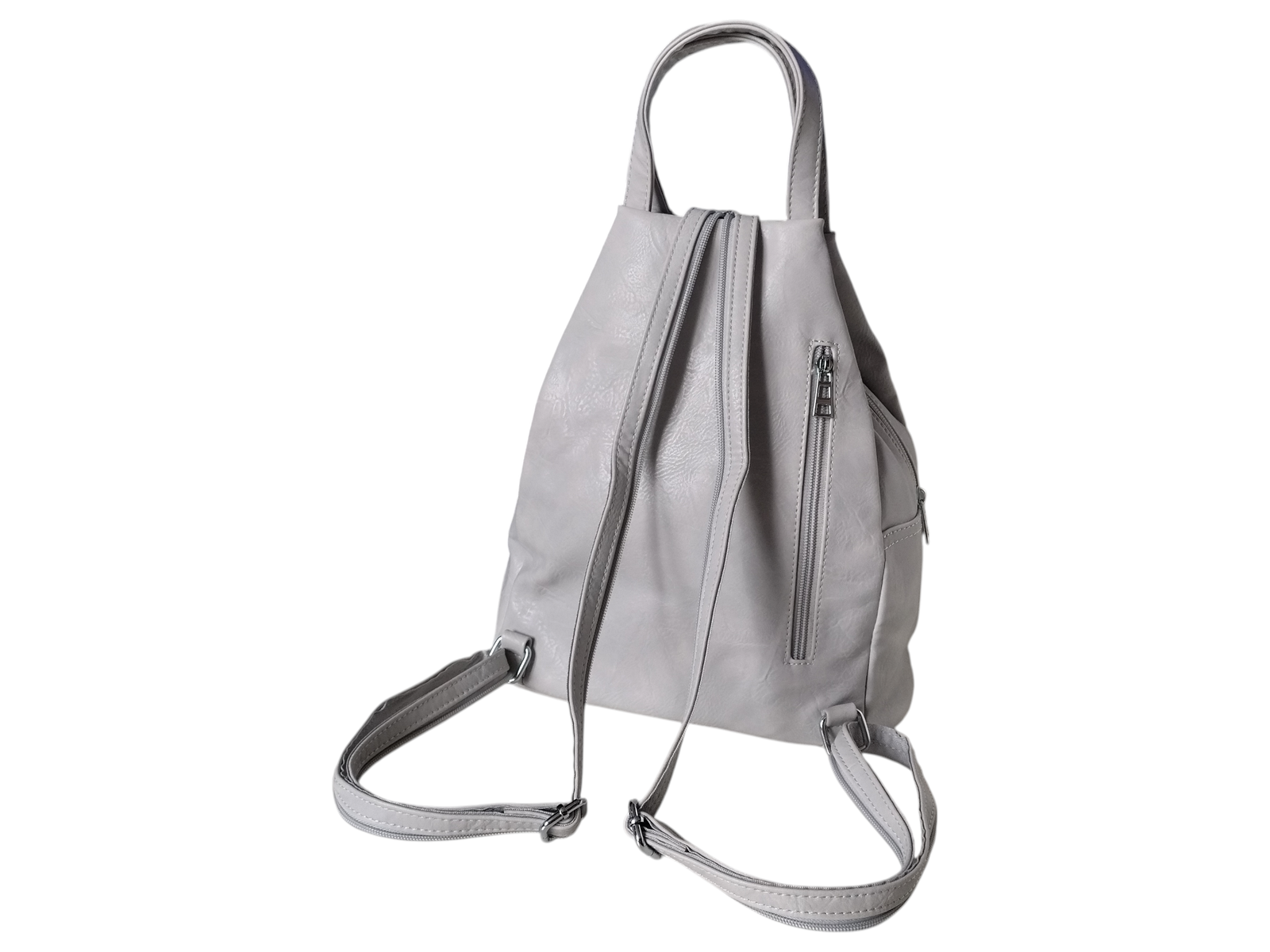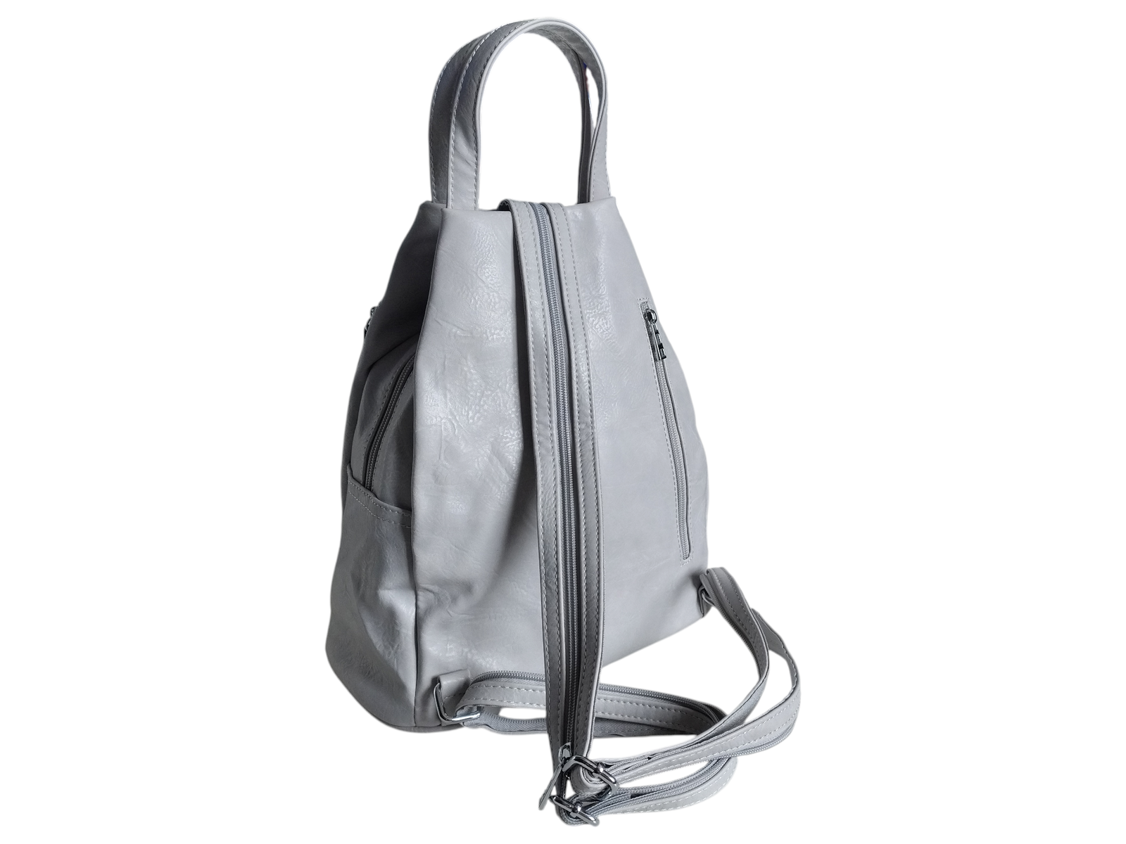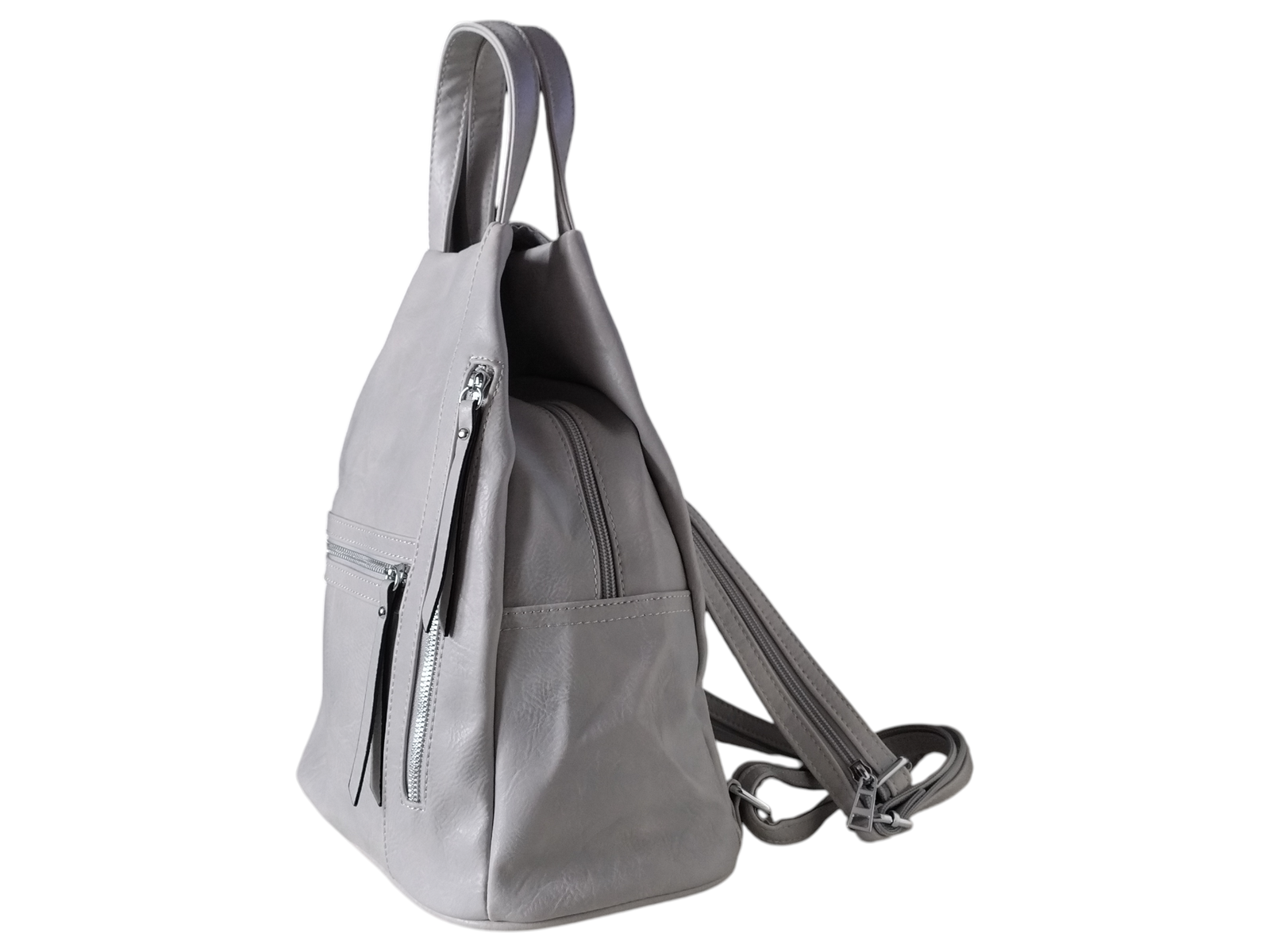 Damski, Plecak Modny Worek na Ramię, Skóra Ekologiczna 6 Kieszeni, Szary