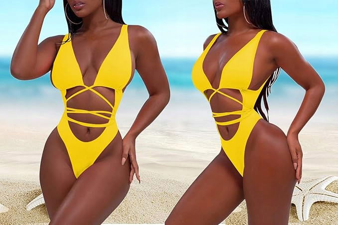 Damski seksowny jednoczęściowy strój kąpielowy żółty,rozmiar S