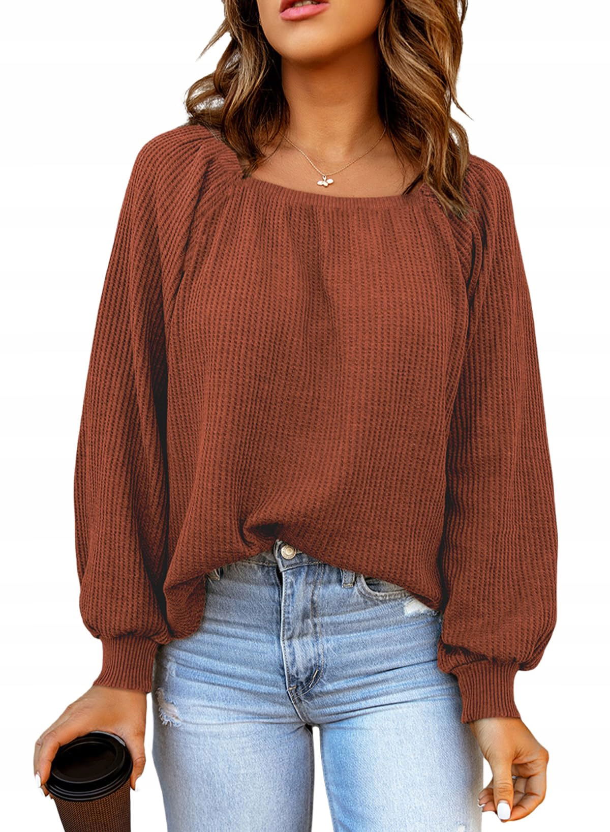Damski sweter z długim rękawem ,kwadratowy dekolt , luźny rozmiar L