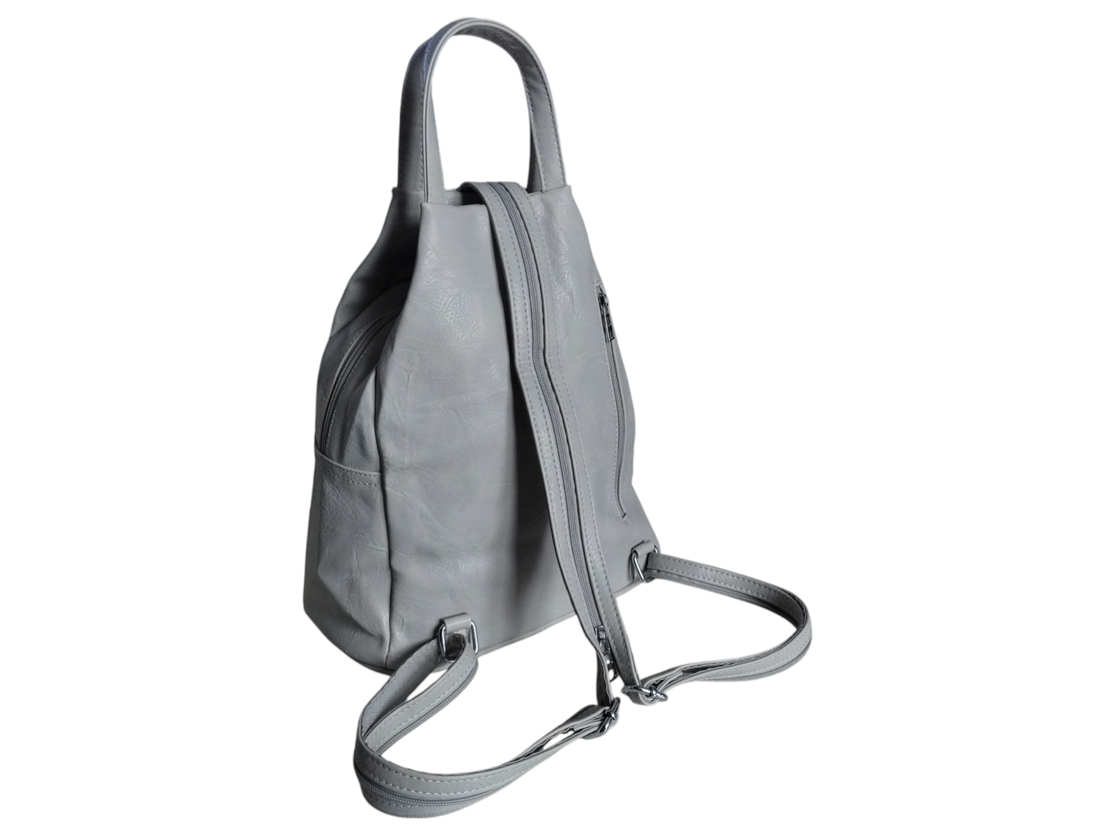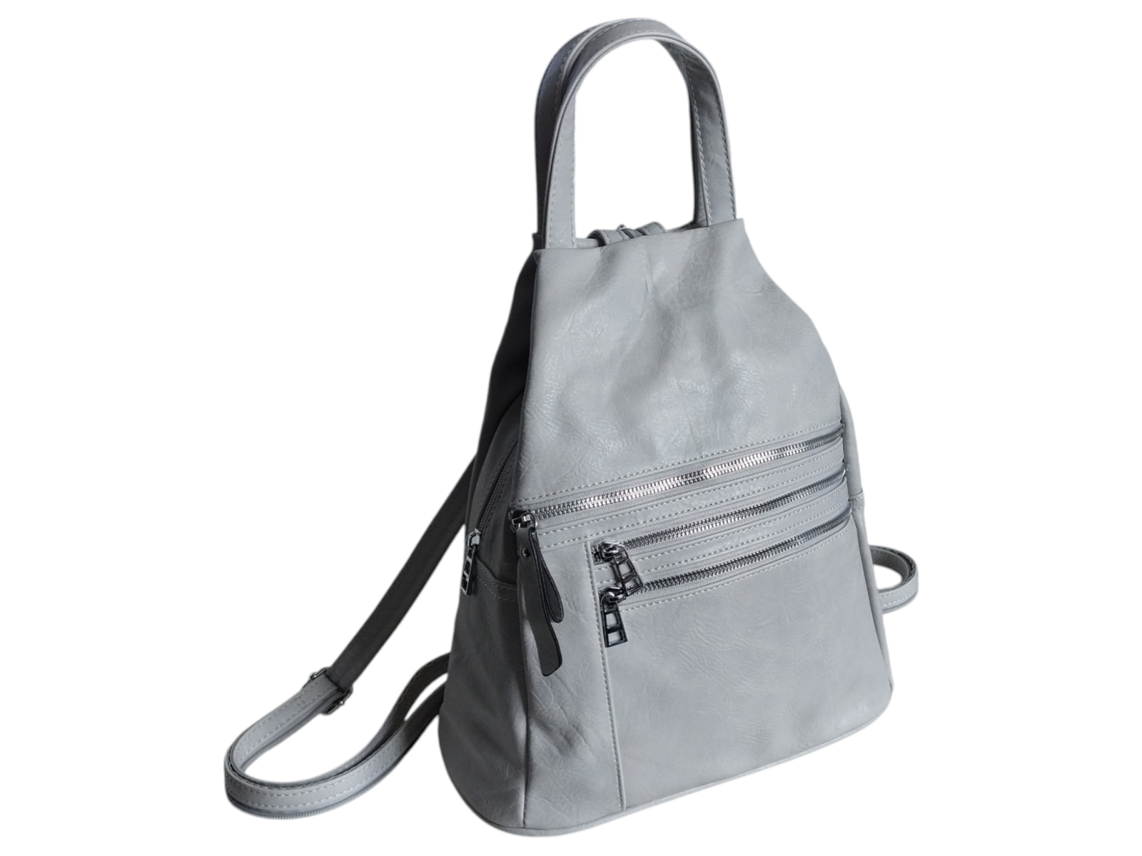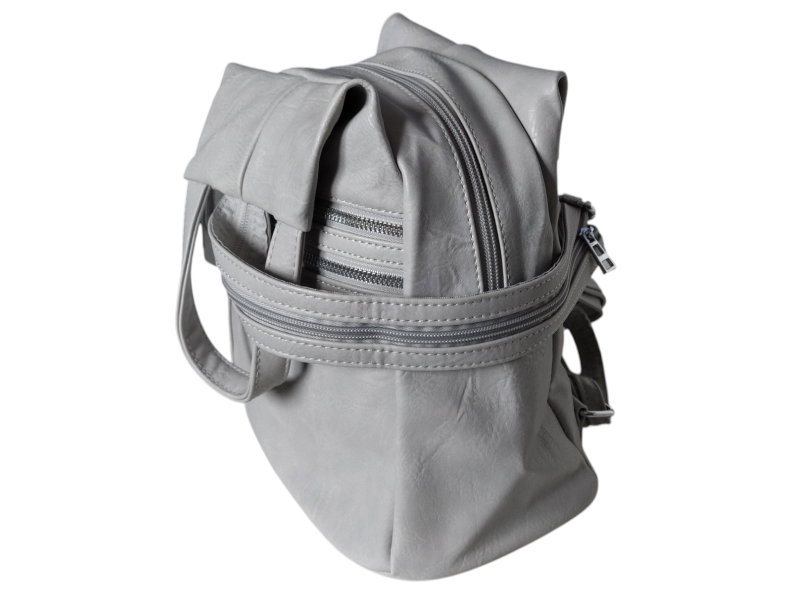 Damski Worek Miejski, Plecak Na Ramię, Skóra Ekologiczna 7 Kieszeni, Szary