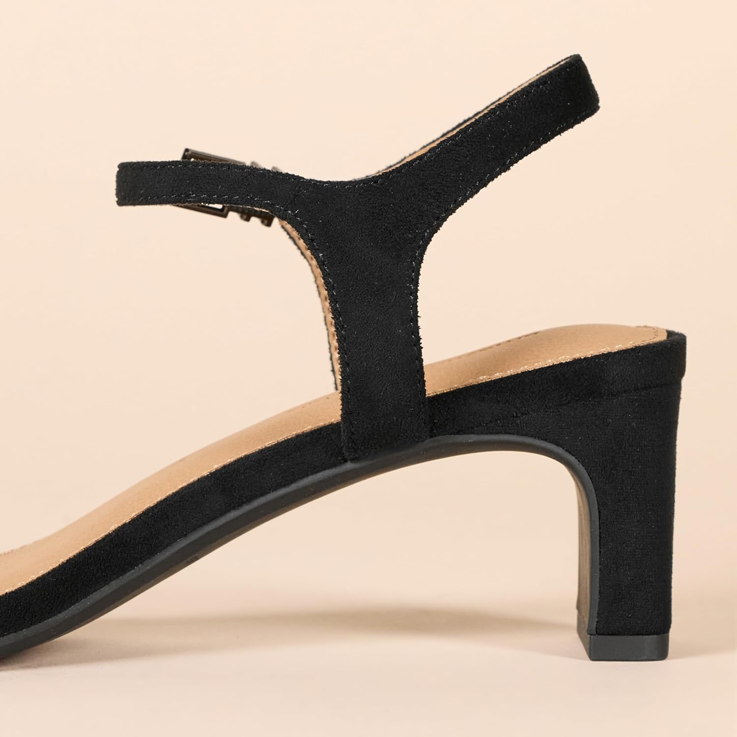 Damskie buty zamszowe z paskiem wokół kostki na niskim obcasie, rozmiar 38